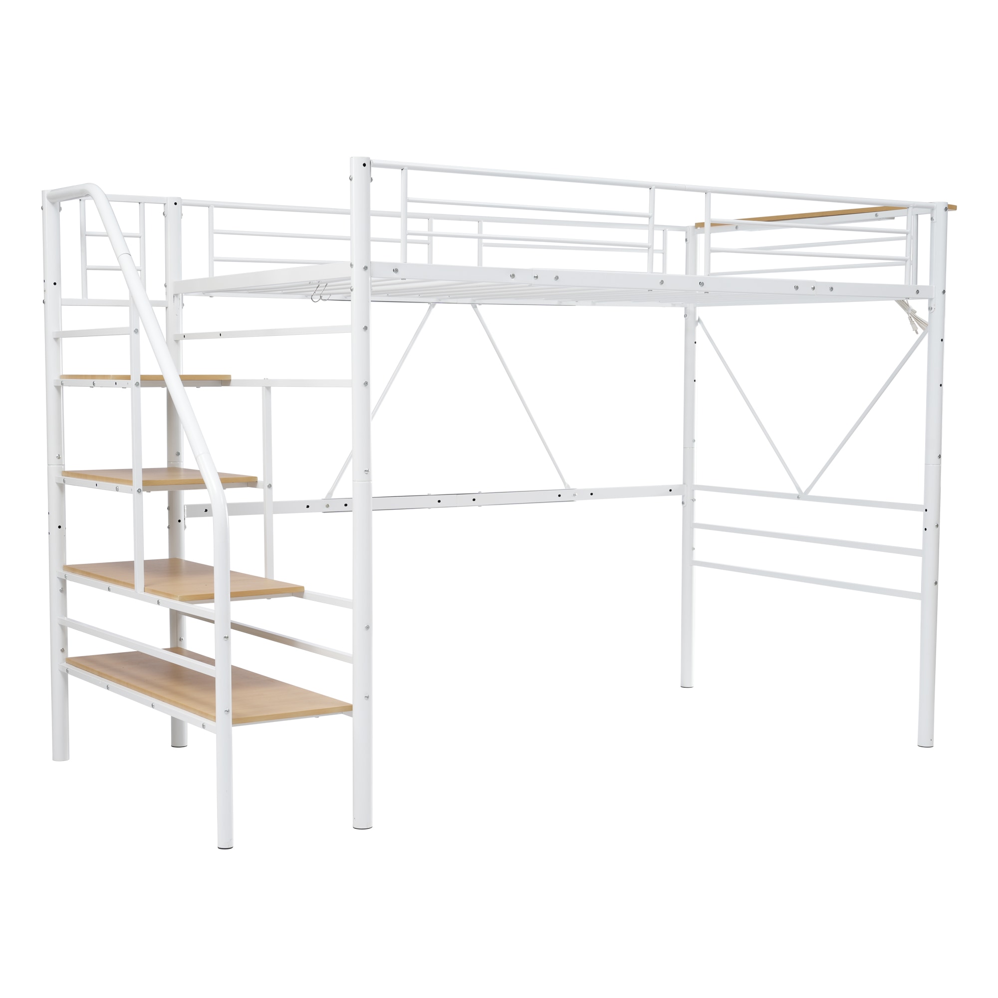 59国内入荷済!!【2梱包】SD ロフトベッド 階段付き パイプベッドセミダブル コンセント付き 収納 スチール 耐震 ベッド シングル パイプベッド パイプベッドフレームのみ【SDセミダブル】