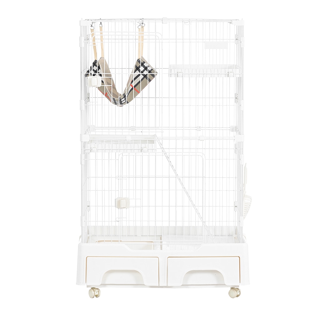 [国内即発送]N62猫 ケージ キャットケージ 2段 猫トイレ付 キャスター付 ハンモック付 猫ゲージ おしゃれ キャットハウス ネコ ハウス 多段 留守番 保護 脱走防止 多頭飼い 多頭 スチール