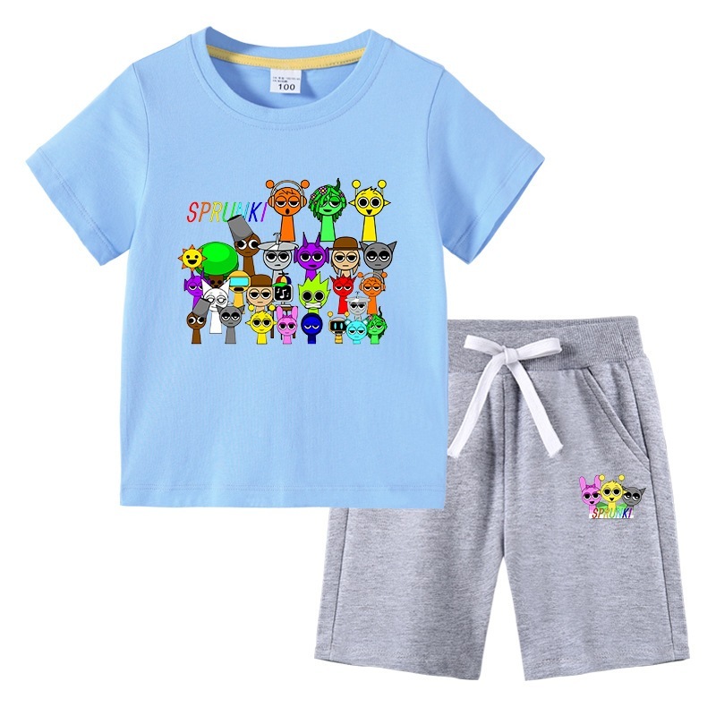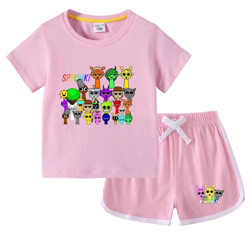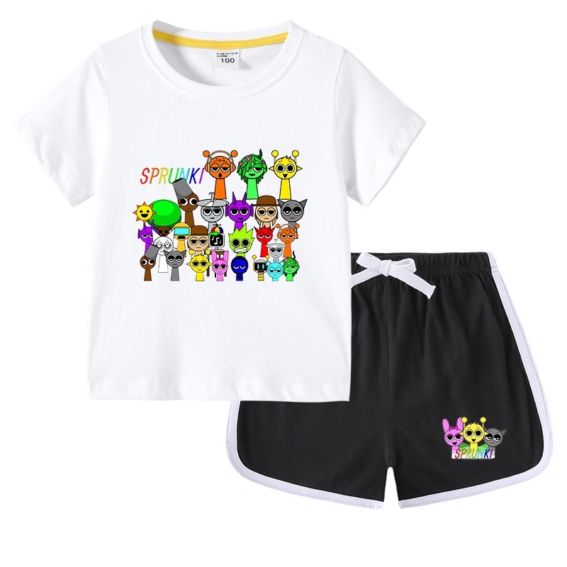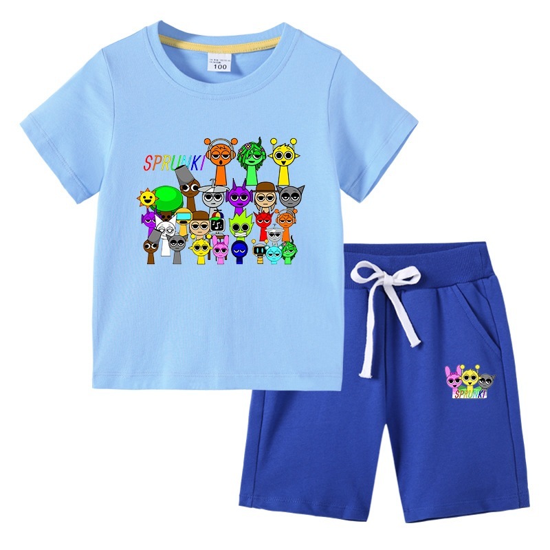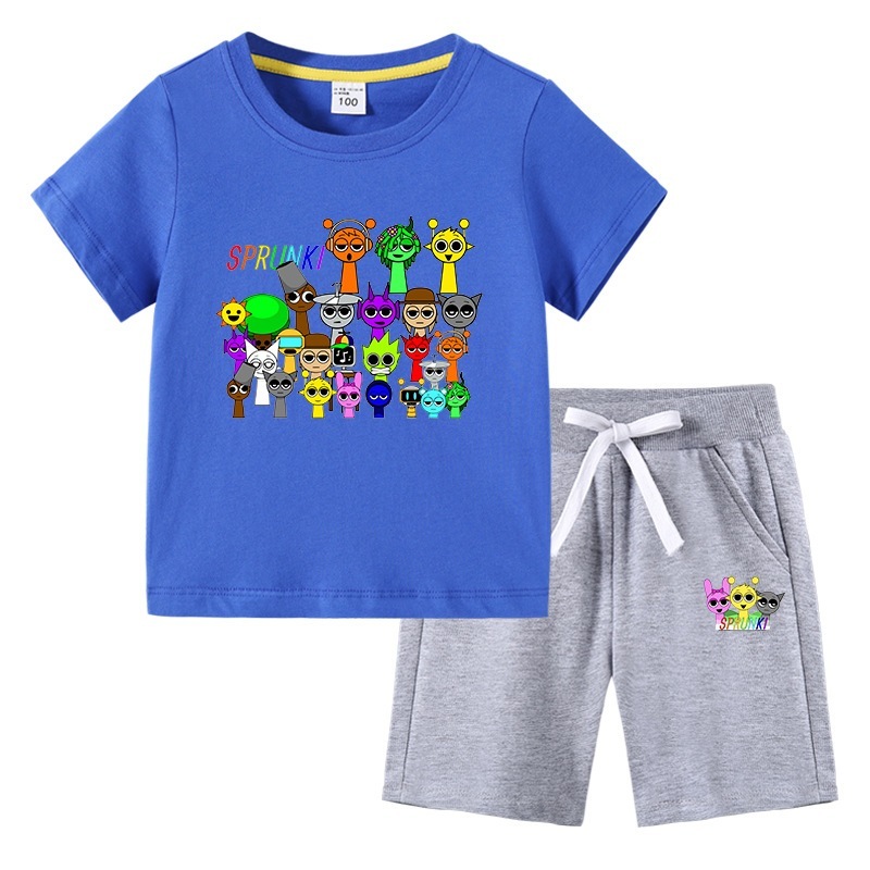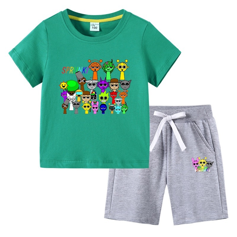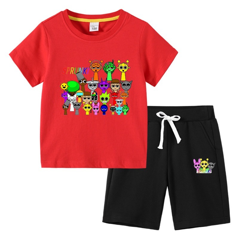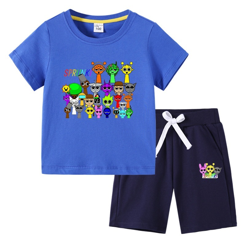 スプランキー sprunki 子供 キッズ 子ども 男の子女の子 半袖シャツ 子ども服 ジャージトップス 上下セット ジャージ 短パン 半ズボン 綿 ウェア Tシャツ1