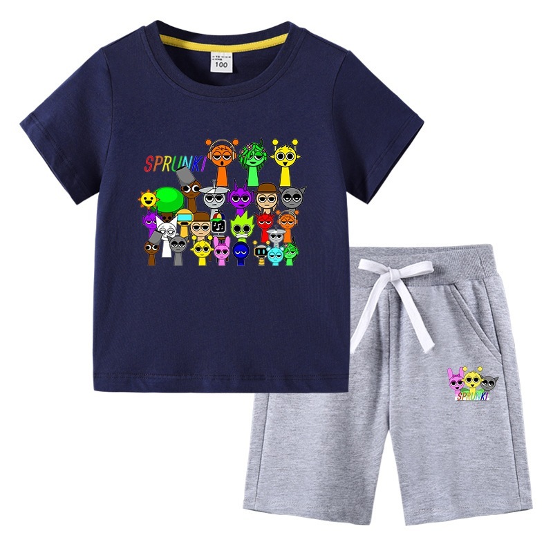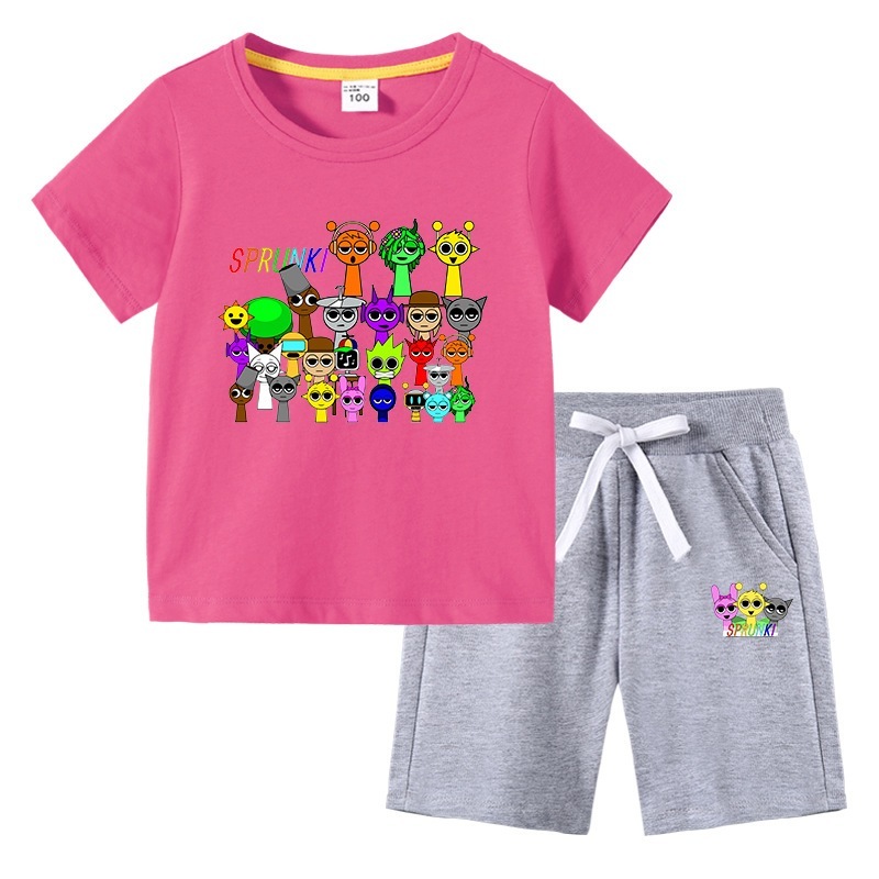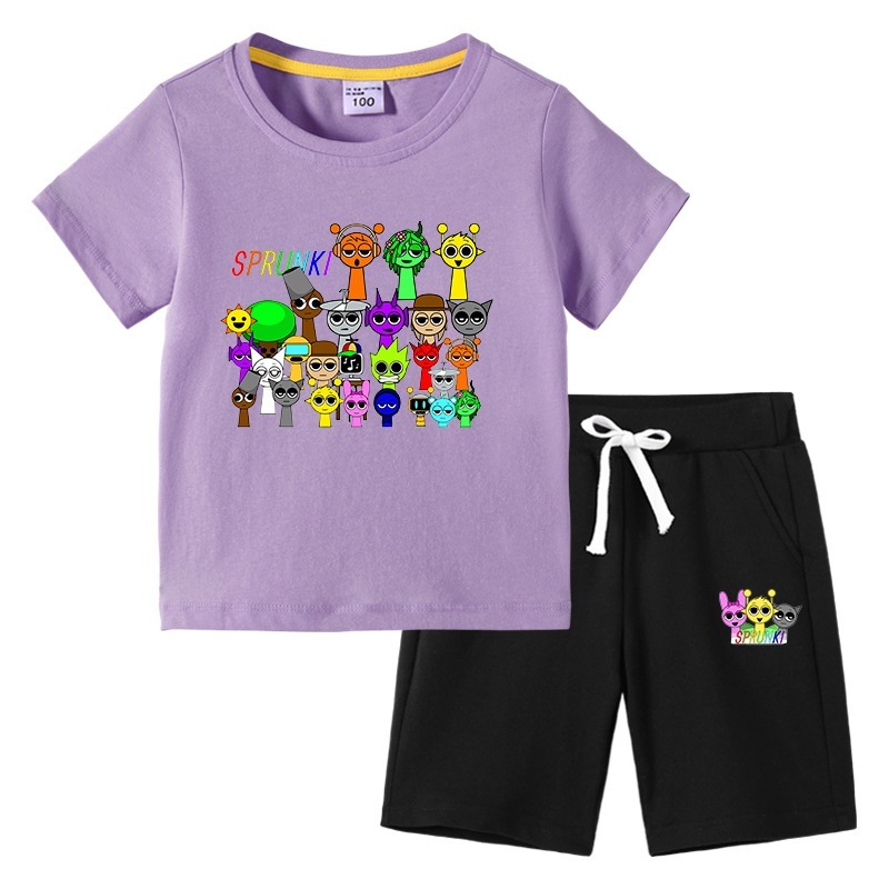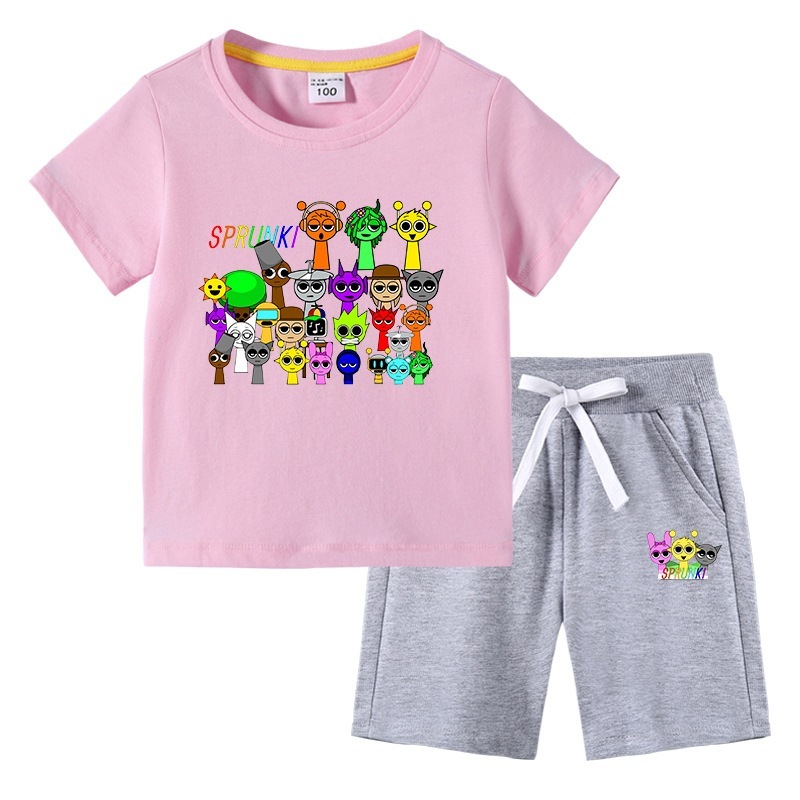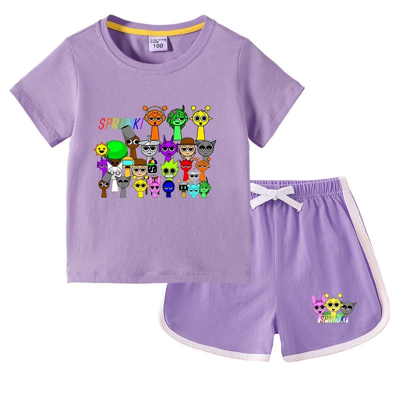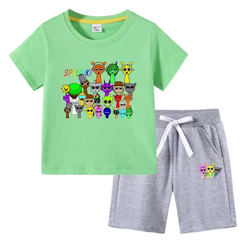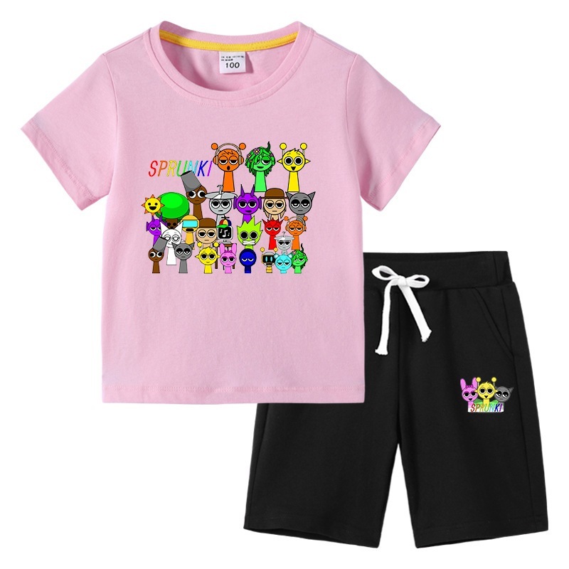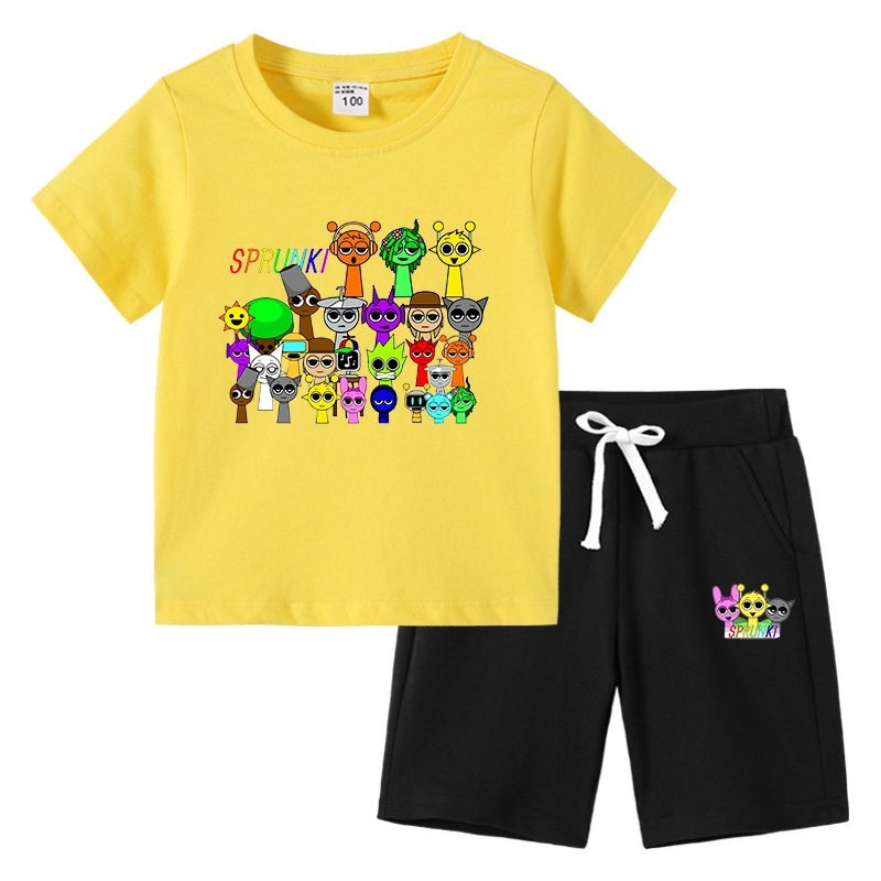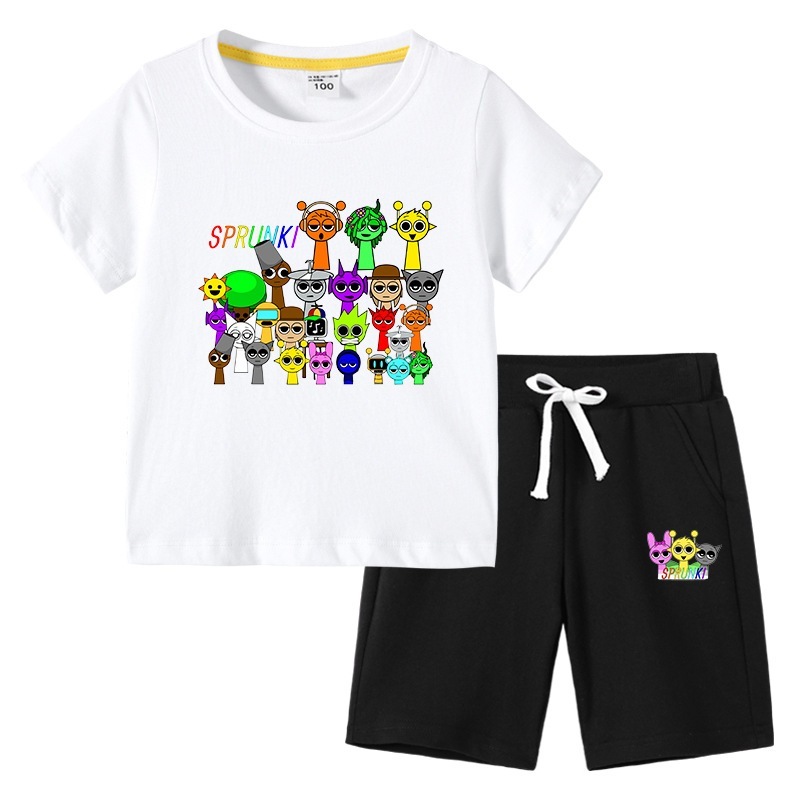 スプランキー sprunki 子供 キッズ 子ども 男の子女の子 半袖シャツ 子ども服 ジャージトップス 上下セット ジャージ 短パン 半ズボン 綿 ウェア Tシャツ1