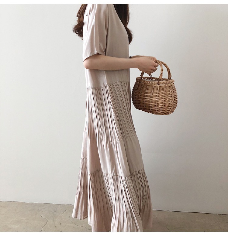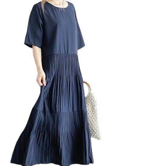 【本日限定】ワンピース 夏 きれいめ プルオーバー ロング丈 レディース 半袖 ティアード タック入り ギャザー フレア クルーネック マキシ丈 プリーツワンピース Aライン 夏ワンピース 落ち感 ゆ