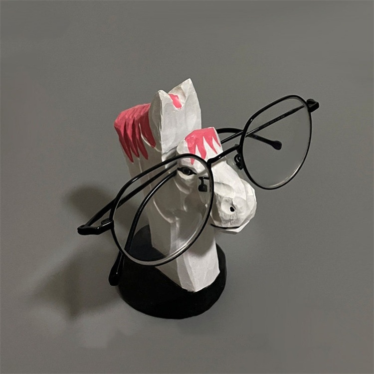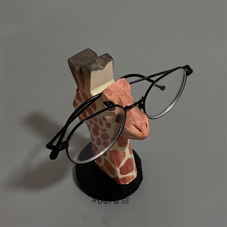 HUSKIINSスタイル かわいい 木彫り メガネホルダー (ハスキー/トラ/キリン柄) 5種アニマル 5.5×8×12.5cm ナチュラル 贈り物