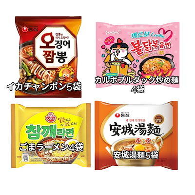 ブルダック炒め麺韓国ラーメン4種セット(18袋)イカチャンポン (カルボ) ごまラーメン 安城湯麺