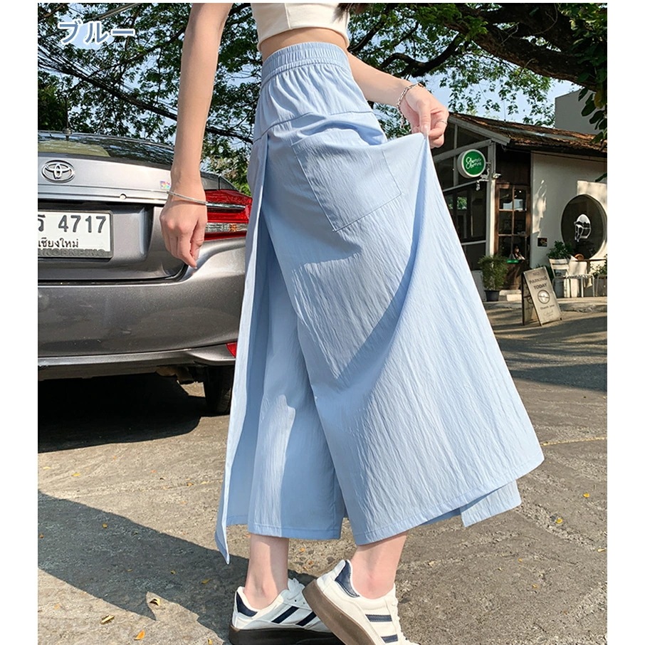 ワイドパンツ レディース スカートパンツ 軽量快適 無地 春夏 軽い ウエストゴム 着痩せ ボトムス ゆったり 春 夏 秋 通勤 春夏服装