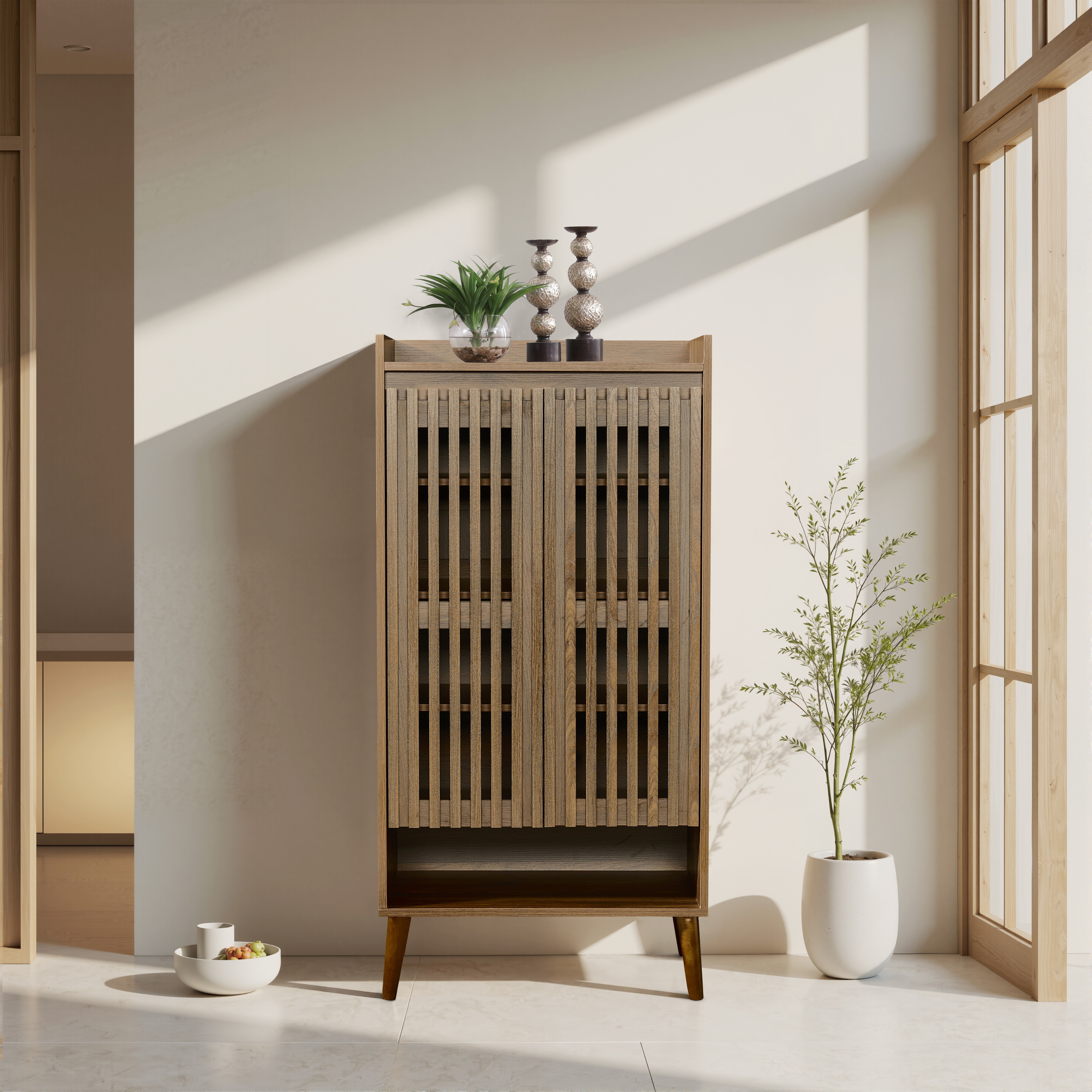 680国内入荷済!!【新作】ウォールナット色の玄関キャビネット玄関収納下駄箱大容量収納キャビネット