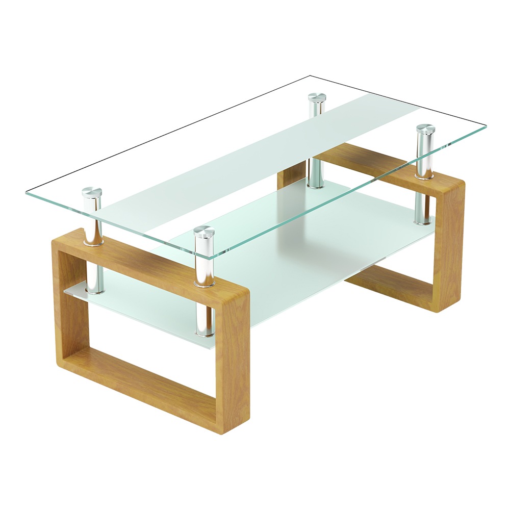 808国内入荷済!!ガラステーブル ローテーブル コーヒーテーブル 幅87.5x奥47.5x高さ39.5cm 収納棚 口字型のテーブル脚 強化ガラス天板 クリア棚 おしゃれ