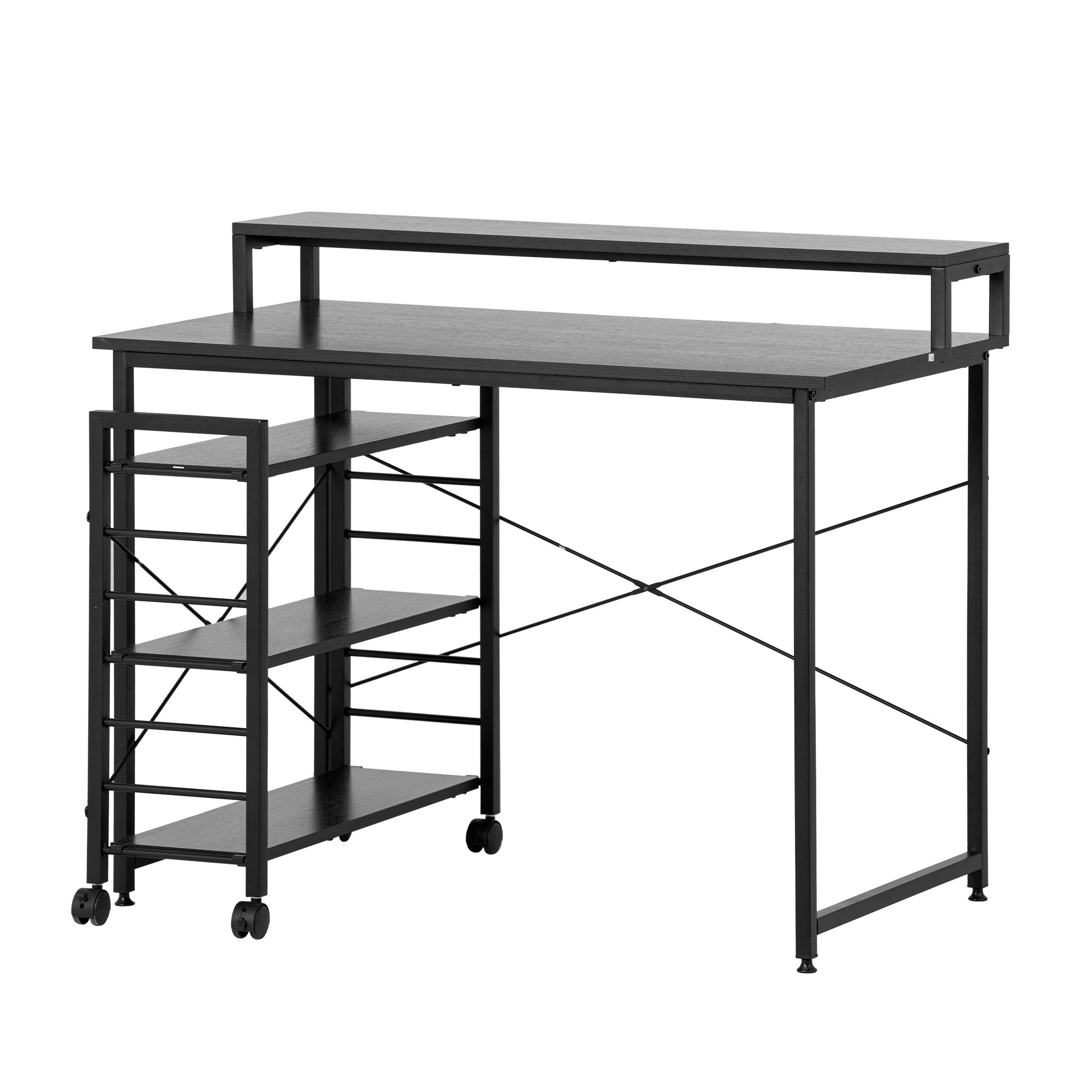 1140国内入荷済!!【301556AAAオフィスチェア+パソコンデスク セット】 【ダークブラウン】パソコンデスク キャスター付きで移動可能ラック付き デスク ワークデスク オフィスデスク 学習デス