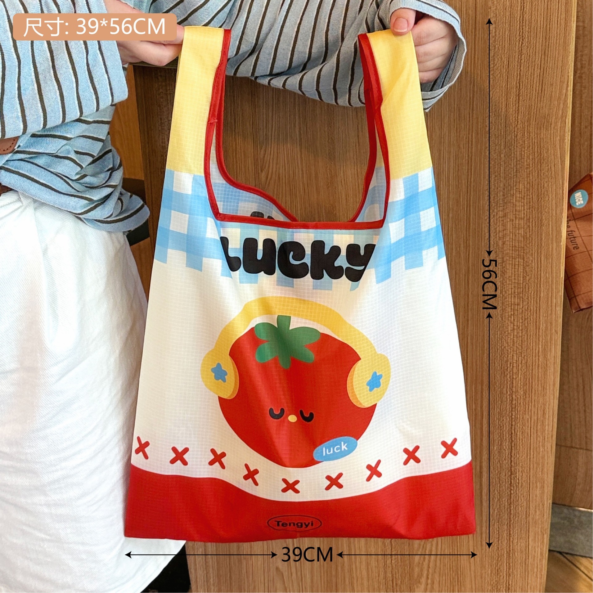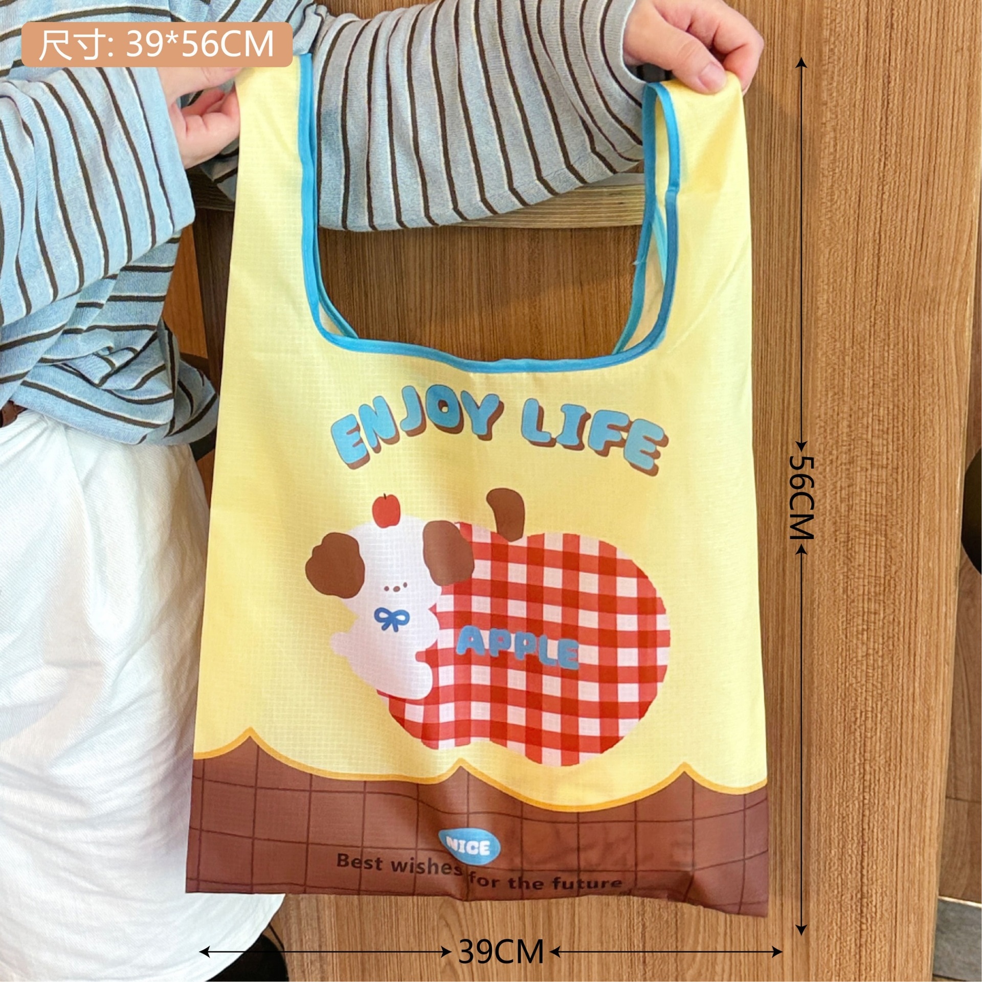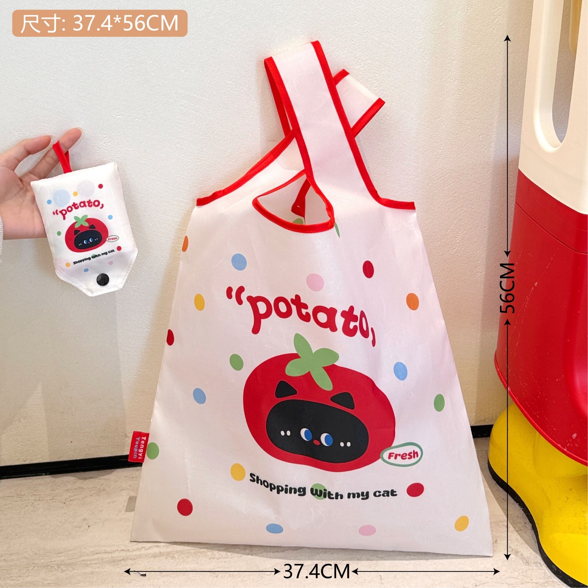 【迅速な出荷】オリジナルキャラクト アップルデザイン エコバッグ 折りたたみ 収納可能 大容量 スーパー ショッピングバッグ トートバッグ 手提げ袋