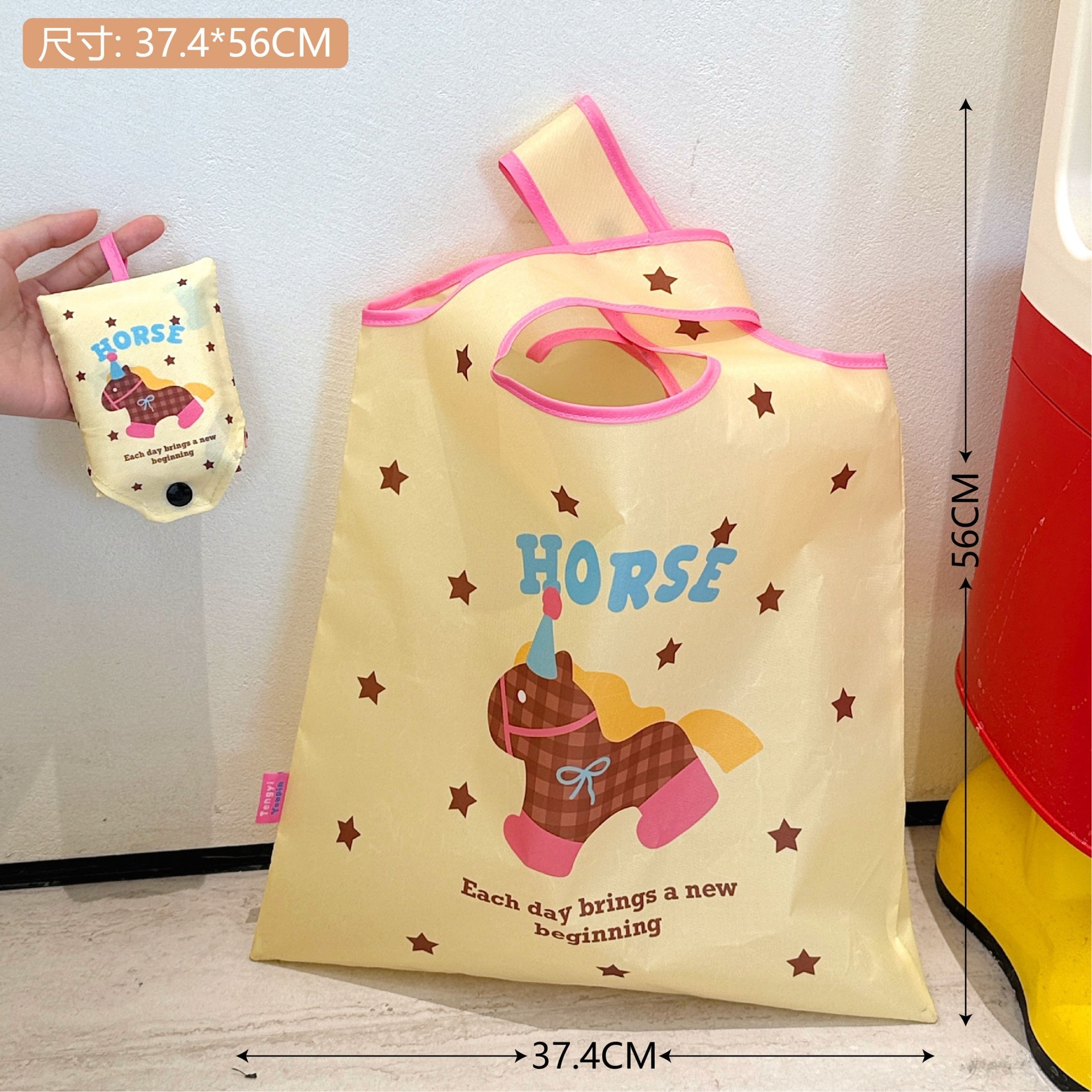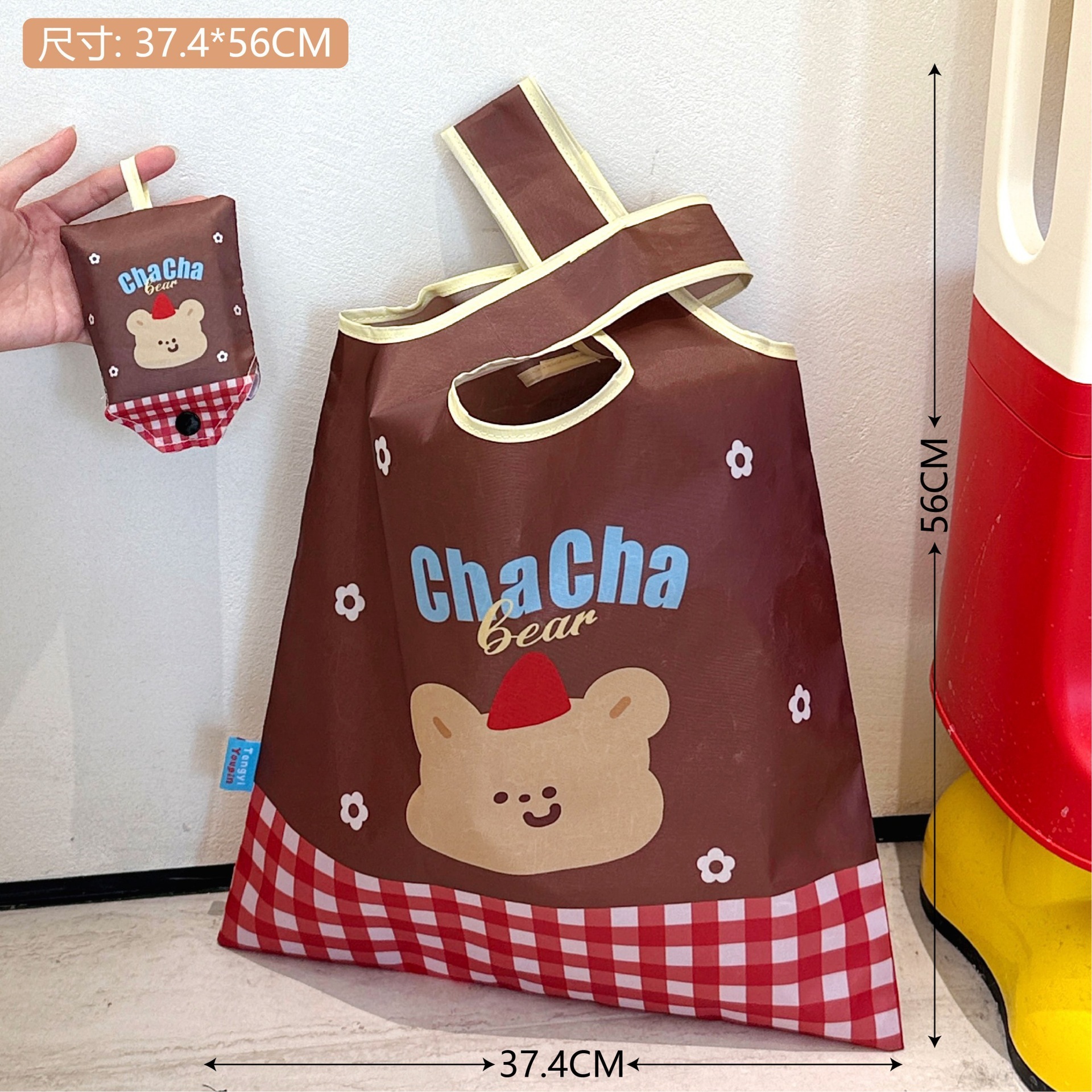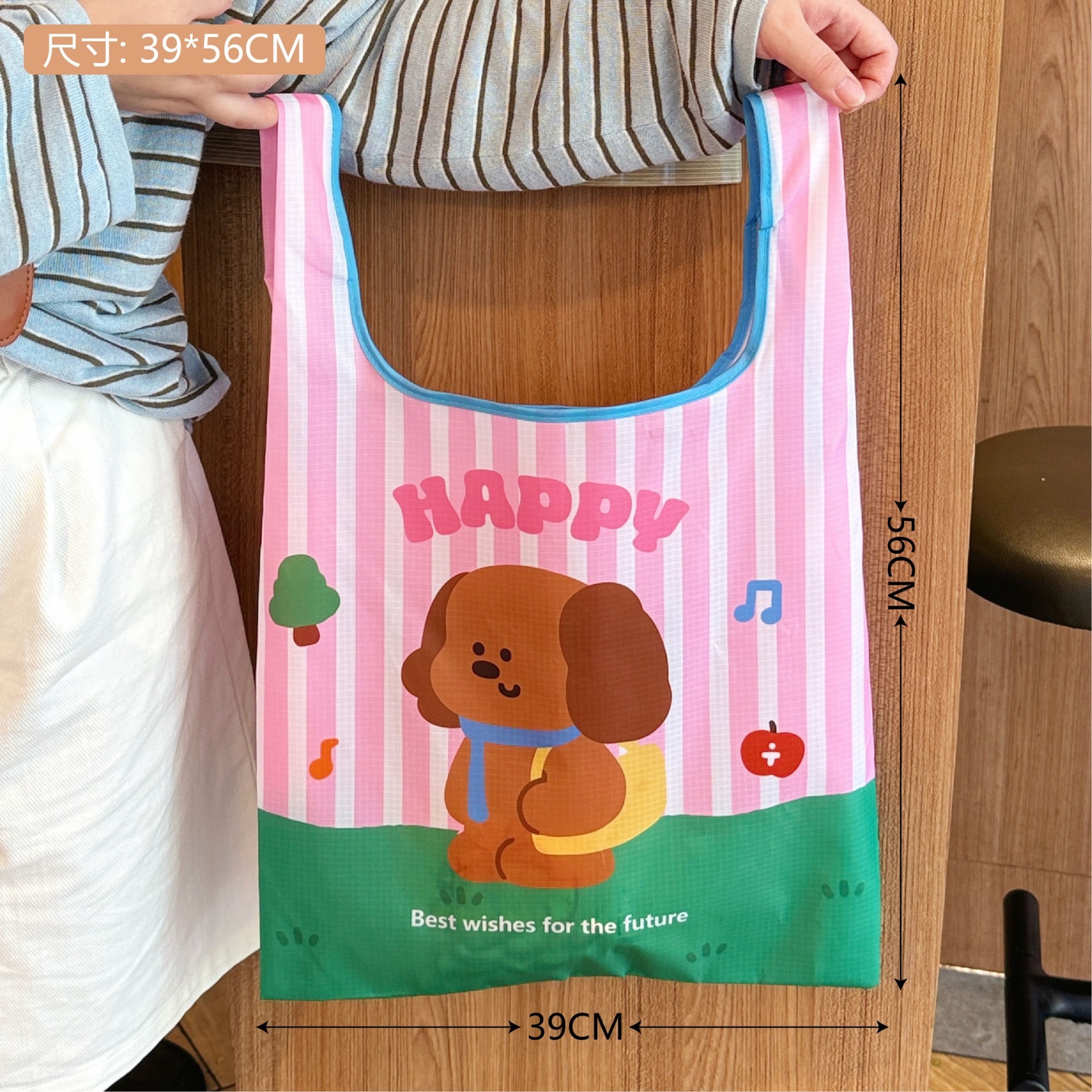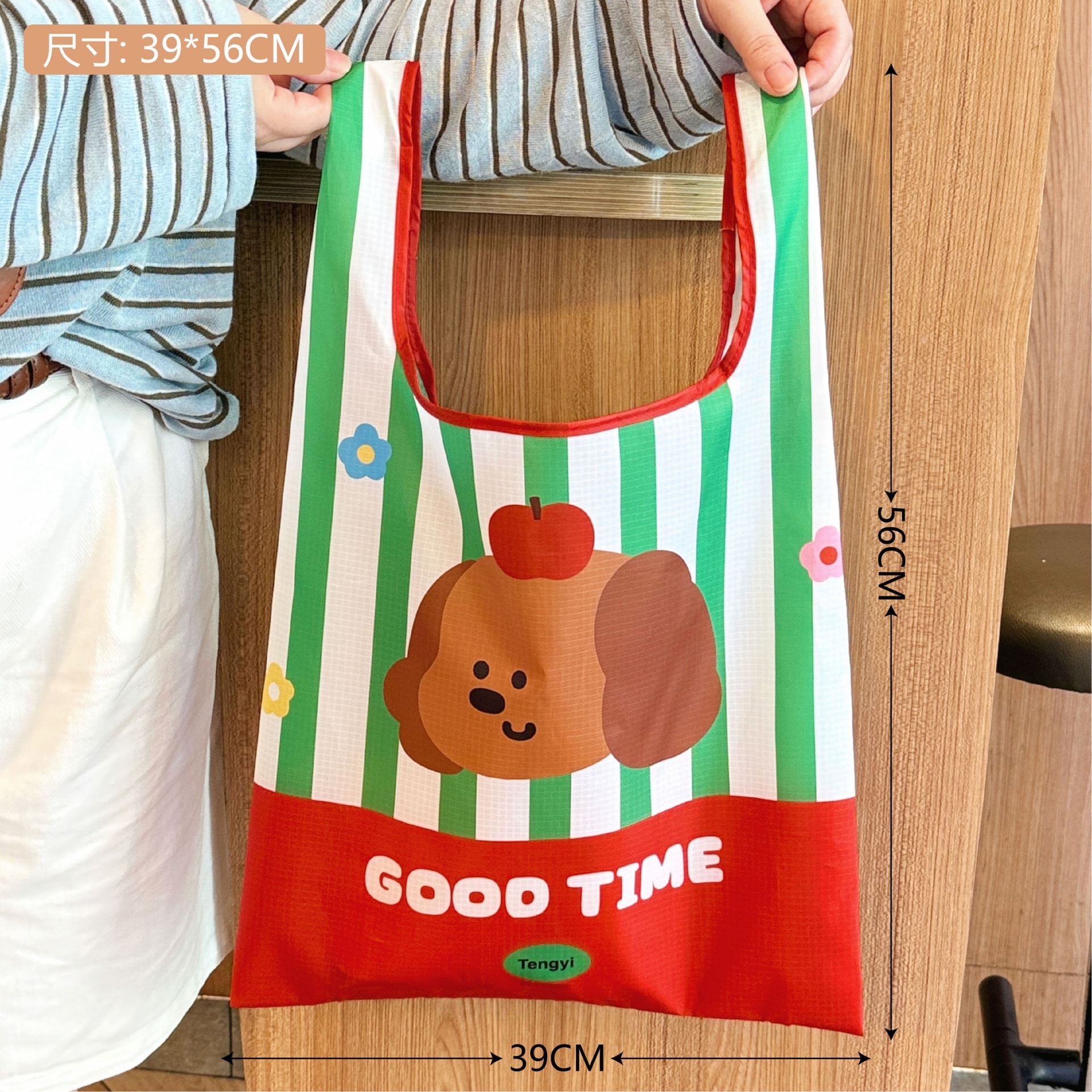 【迅速な出荷】オリジナルキャラクト アップルデザイン エコバッグ 折りたたみ 収納可能 大容量 スーパー ショッピングバッグ トートバッグ 手提げ袋