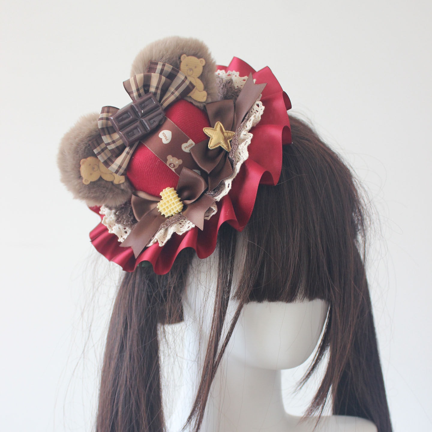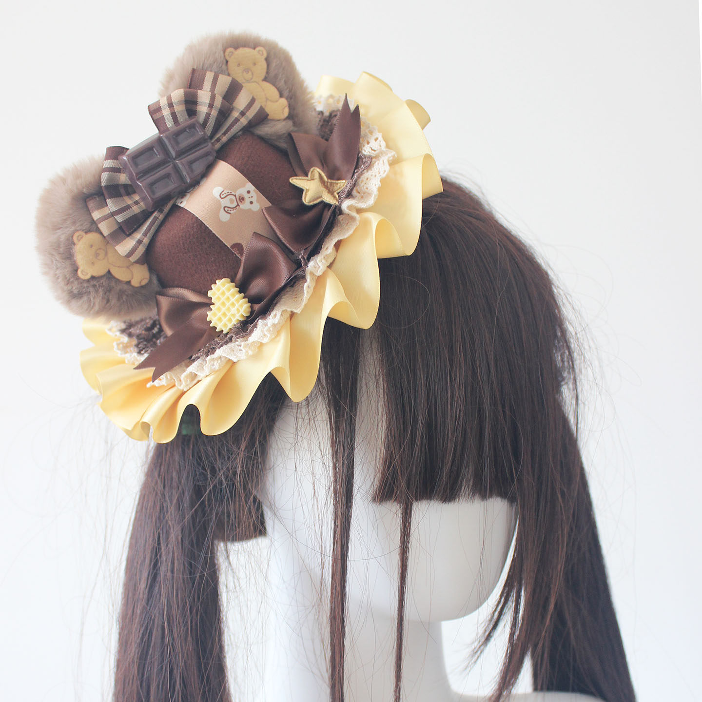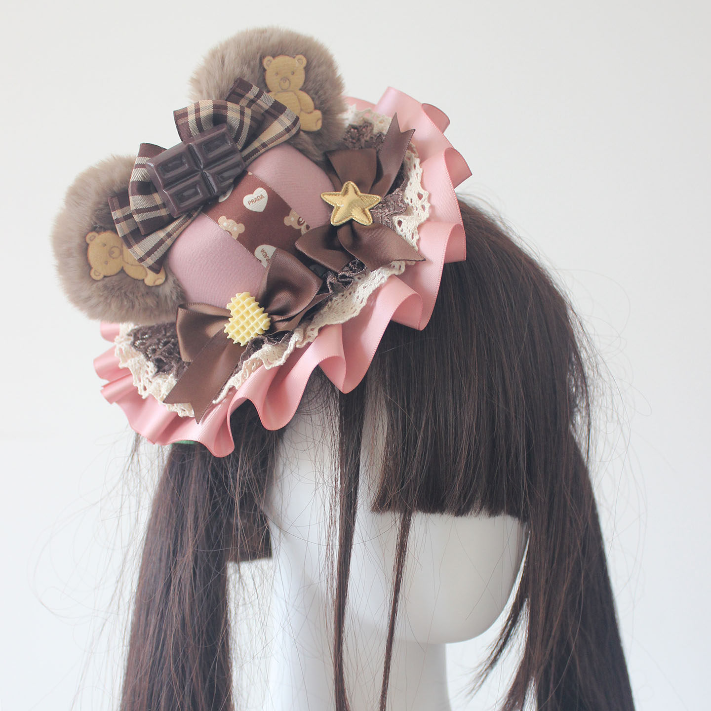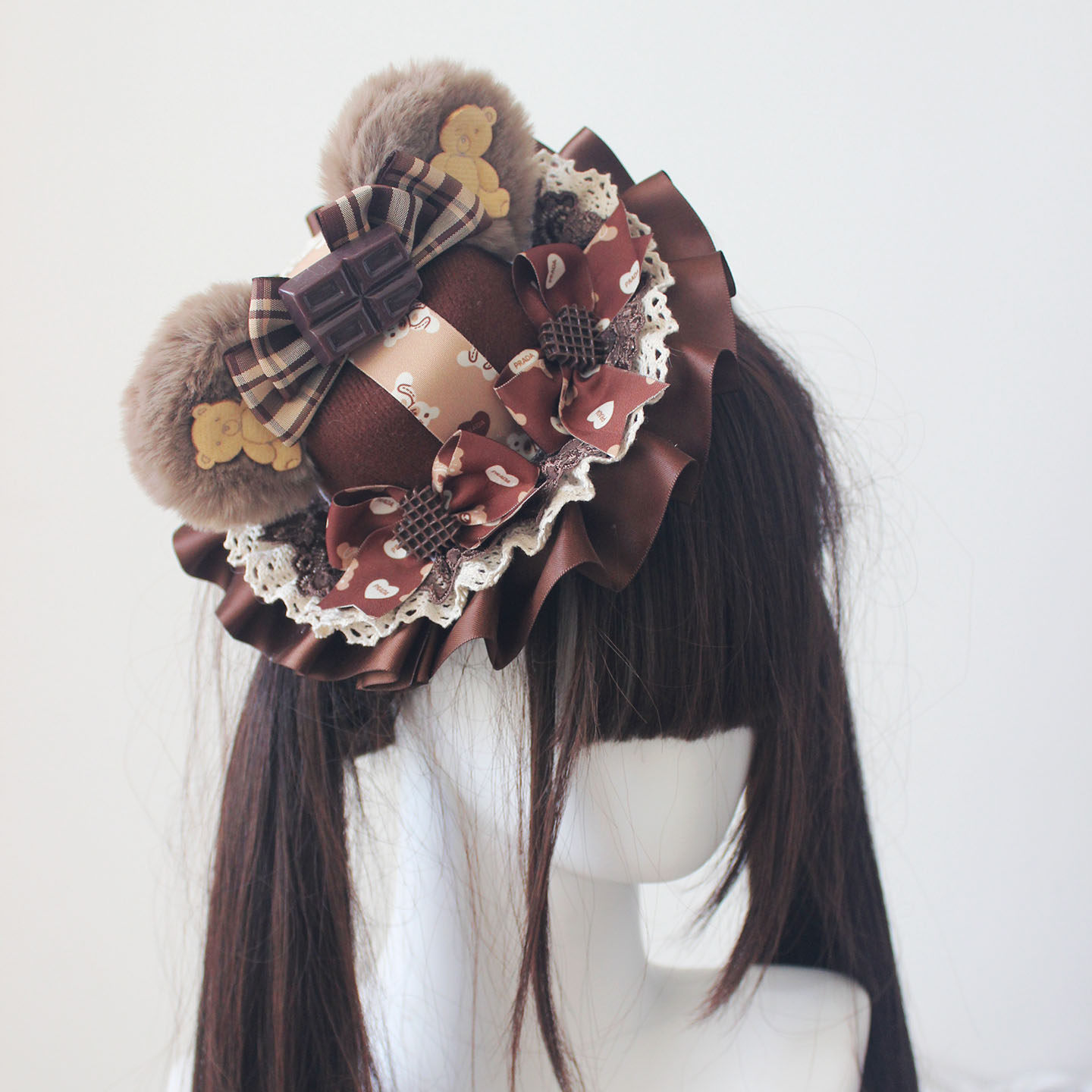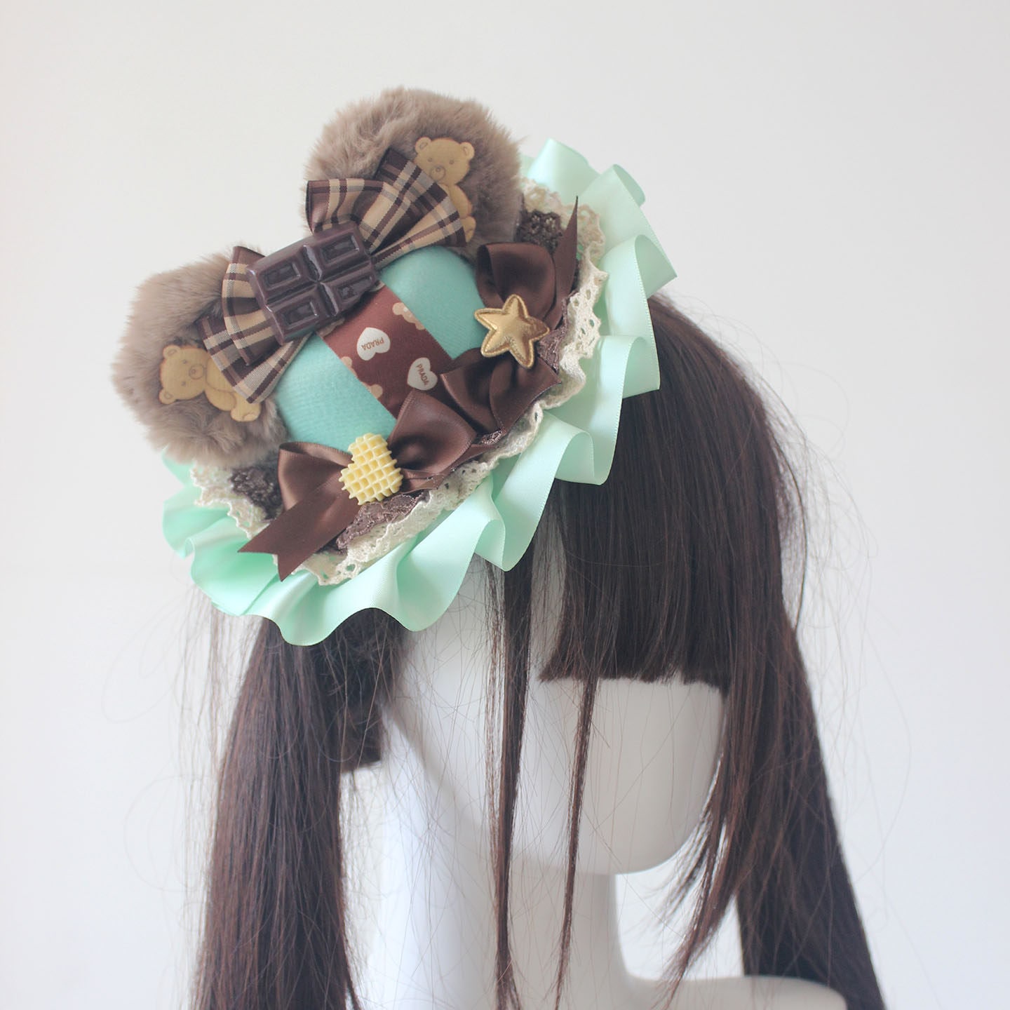 可愛いクマ耳帽子華やかロリータスタイルミントチョコレートアクセサリー