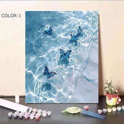 19色 塗り絵 数字 油絵 数字塗り絵 数字油絵セット ぬりえ 油絵風 絵画 DIY絵 お絵描き 油絵キット DIY アクリル絵画 ナンバー油絵キット 30x40cm 水面を舞う蝶 花と胡蝶 海外通販