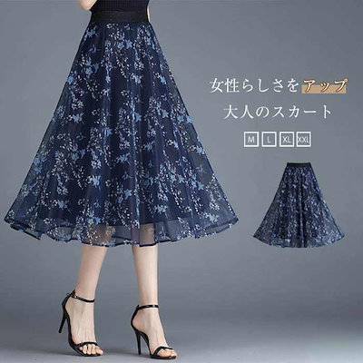 スカート 春夏 膝丈 Aラインスカート チュールスカート フレアスカート レディース ボトムス 夏スカート 夏ボトムス 花柄スカート 柄スカート レディーススカート 膝下 ひざ下 Aライン フレア 涼