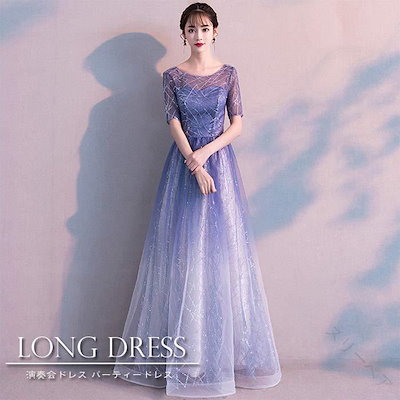 パーティードレス ウェディングドレス 演奏会用 キラキラ ロングドレス 結婚式 二次会 ピアノ発表会 お呼ばれ 光沢素材 星屑デザイン 高品質 レディース 大人用 グラデーション ワンピース