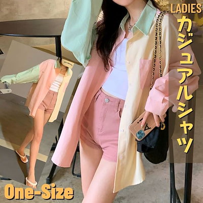 中学生 高校生 ファッション カジュアルシャツ ロングシャツ マルチカラー 10代 韓国 おしゃれ レディース 春 秋 長袖 トップス 14439