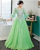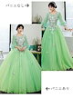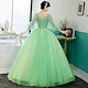 カラードレス 演奏会用ドレス 袖付き 大人 発表会 ロングドレス ステージ衣装 パステルカラー 舞台衣装 コンサート 結婚式 二次会 刺繍 グリーン チュールドレス 大きいサイズ 中高生 海外挙式 コ