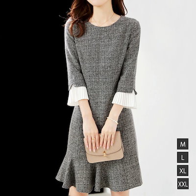 プリーツ袖 ワンピース 膝丈 レディース 春 秋冬 きれいめ 7分袖 膝丈ワンピース 切り替え フレアワンピース フレア aラインワンピース 長袖ワンピース 春秋 ゆったり 大きいサイズ 体型カバー