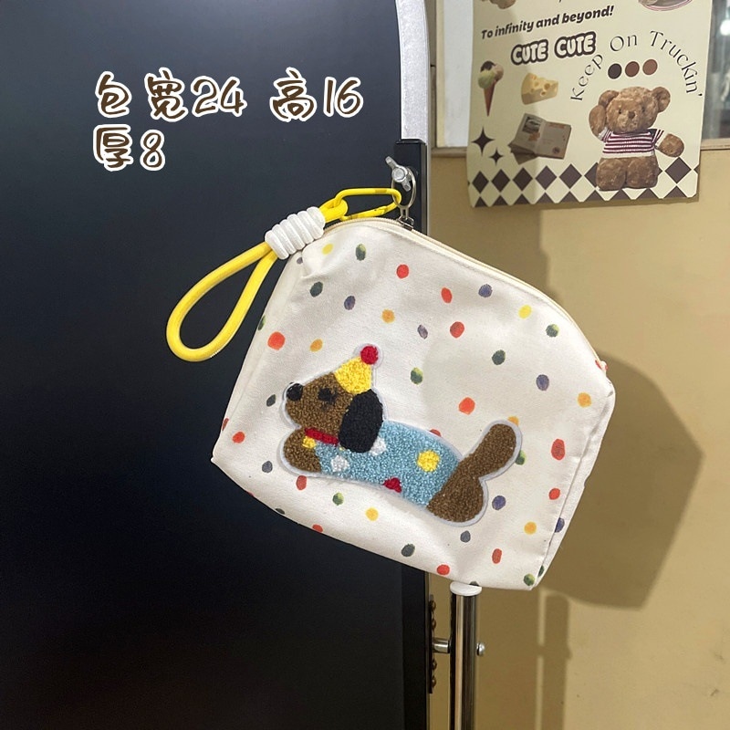 通勤用 かわいい コンパクト 旅行用 お出かけ シンプル 大容量 かわいい子犬の化粧ポーチ刺繍入りカートゥーン収納バッグ旅行用オーガナイザーバッグハンドバッグショッピング用ハンドバッグ(女性用