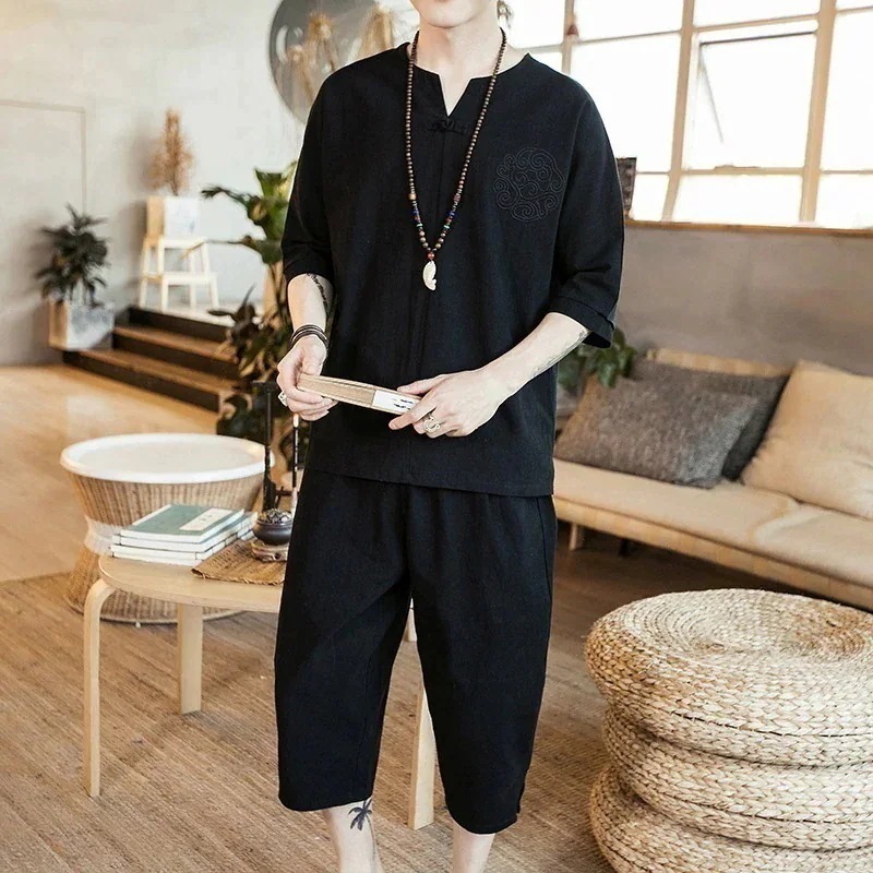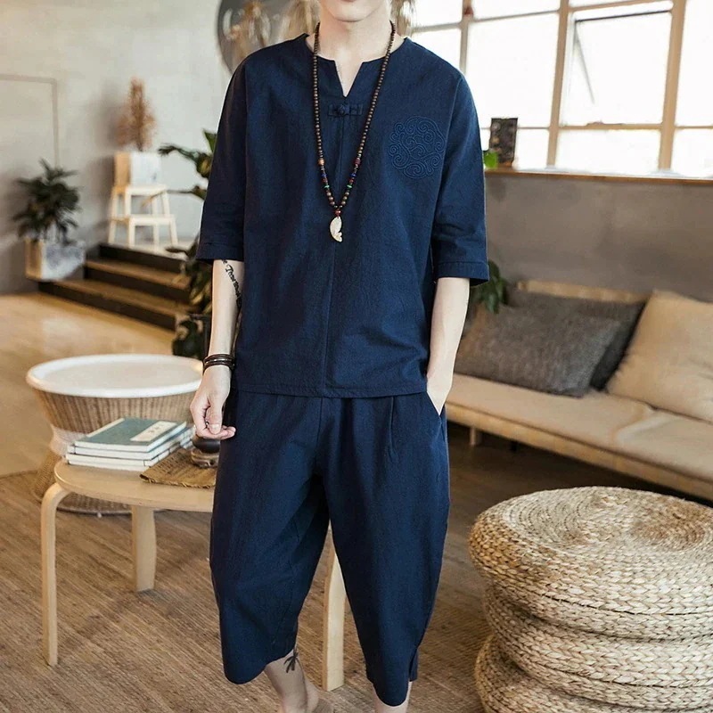 セットアップ上下セット甚平メンズ2点セット半袖パIンツ男性用浴衣着物刺繍しじら織りおしゃれ大きいサイズ祭り花火大会セットアップ108