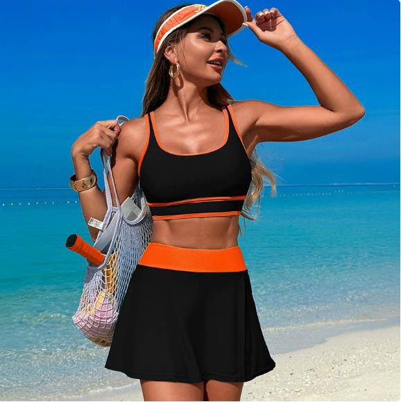 レディース 新作 半袖 水着 ビキニ 速乾性 温泉 ビーチ スポーティ 新品 大人気 スカート付き セパレート ブラウス トップス