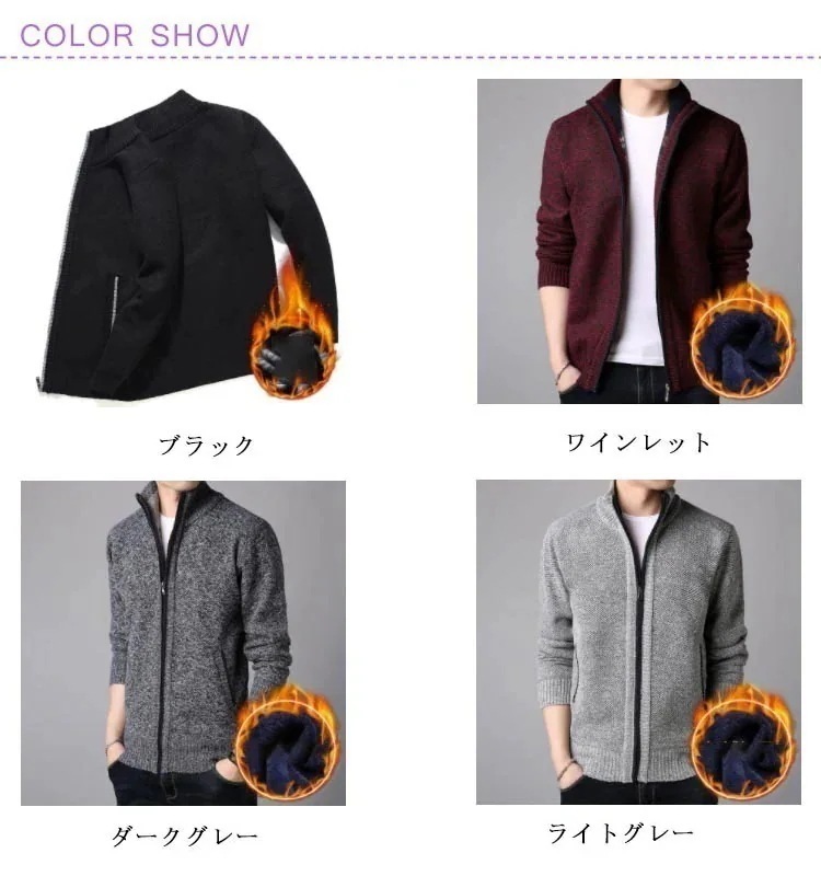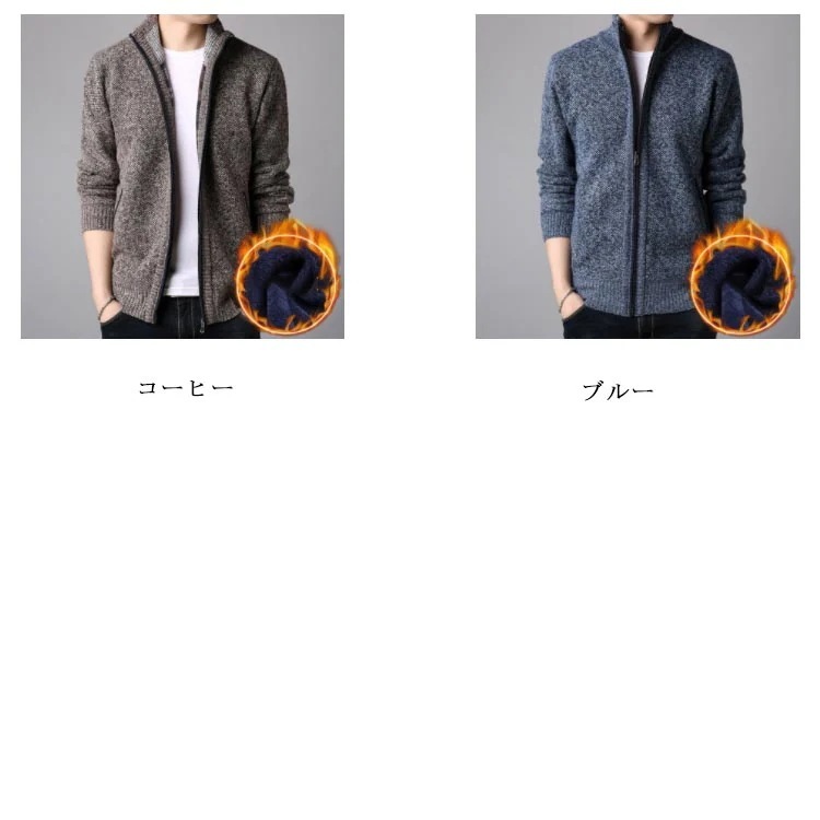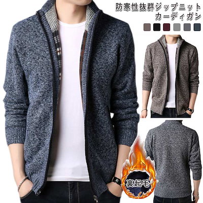 ジップアップニットパーカー ジップアップニットセーター 長袖 裏起毛パンツ 防寒 防寒 ックニット 立ち襟 ニットジャケット メンズ ローゲージ セーター ニットトップス メンズ