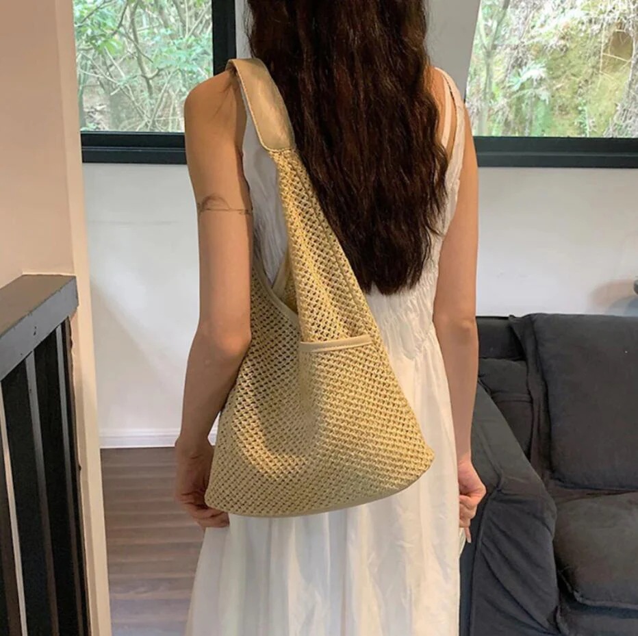 大人气3日で出荷フランス クロスストロートートバッグ わら編みのかばん レディース 森系 文芸 通勤 新着情報 編み物 バケツバッグ