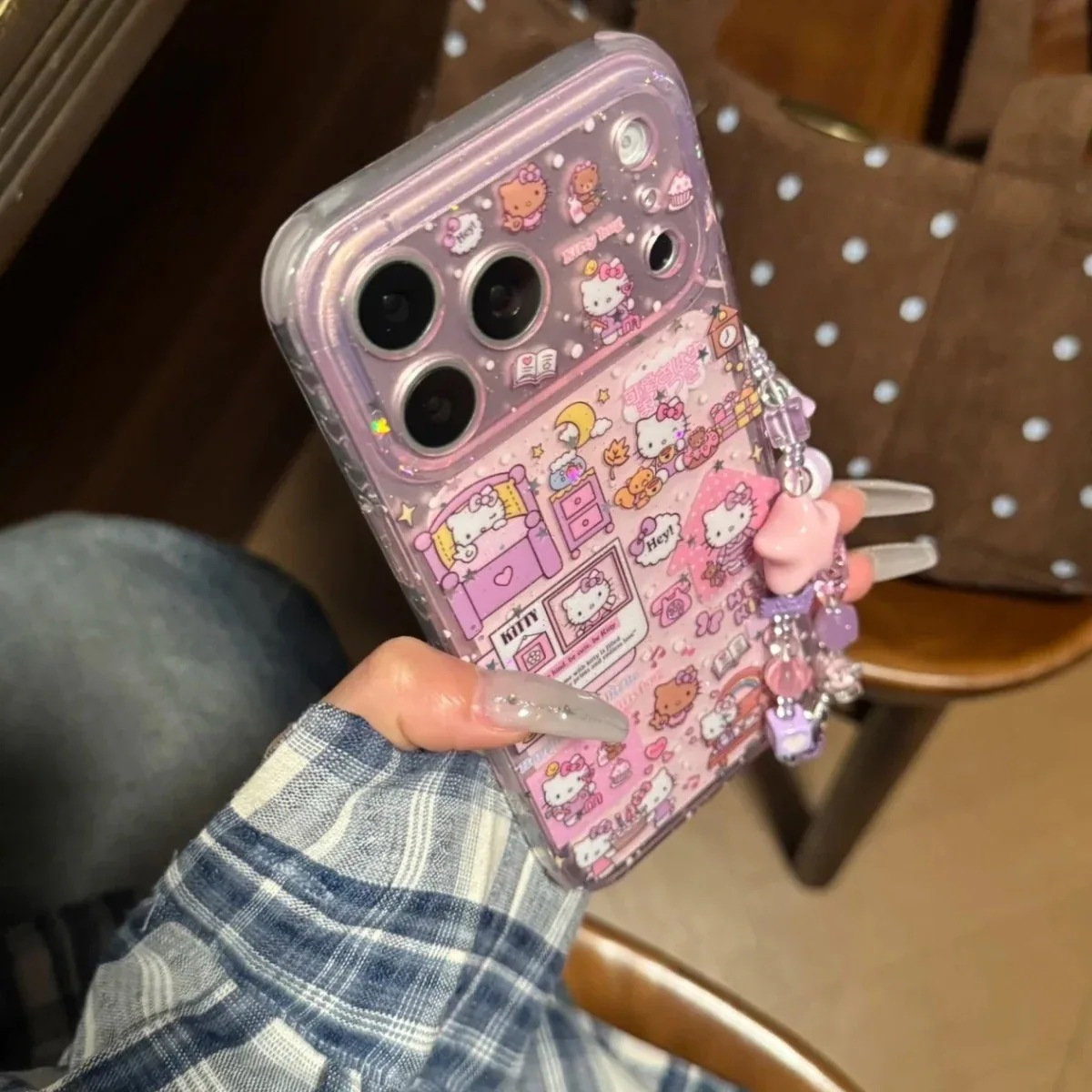 可愛い 人気 iPhone 17/17 Pro/17 Pro Max対応 ケース キティちゃん 全面プリント キラキラ iPhone 16 15 14