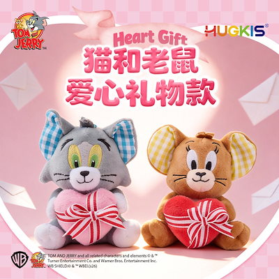 TOPTOY海外限定 HUGKIS トムとジェリー ハートギフトシリーズ トム ジェリー ぬいぐるみキーホルダー バッグチャーム バレンタイン ギフト フィギュア