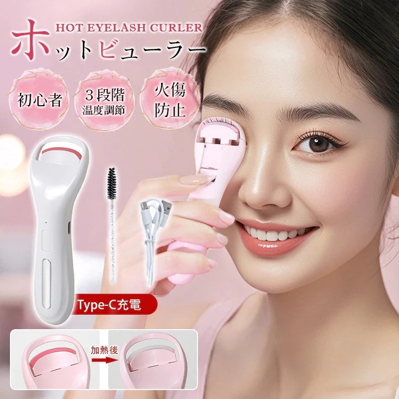 即納/ ホットビューラー ビューラー 操作簡単 初心者 まつげ挟む クリップ 24時間キープ カール 3段階温度調節 火傷防止 充電式 急速予熱 SNS話題 爆買