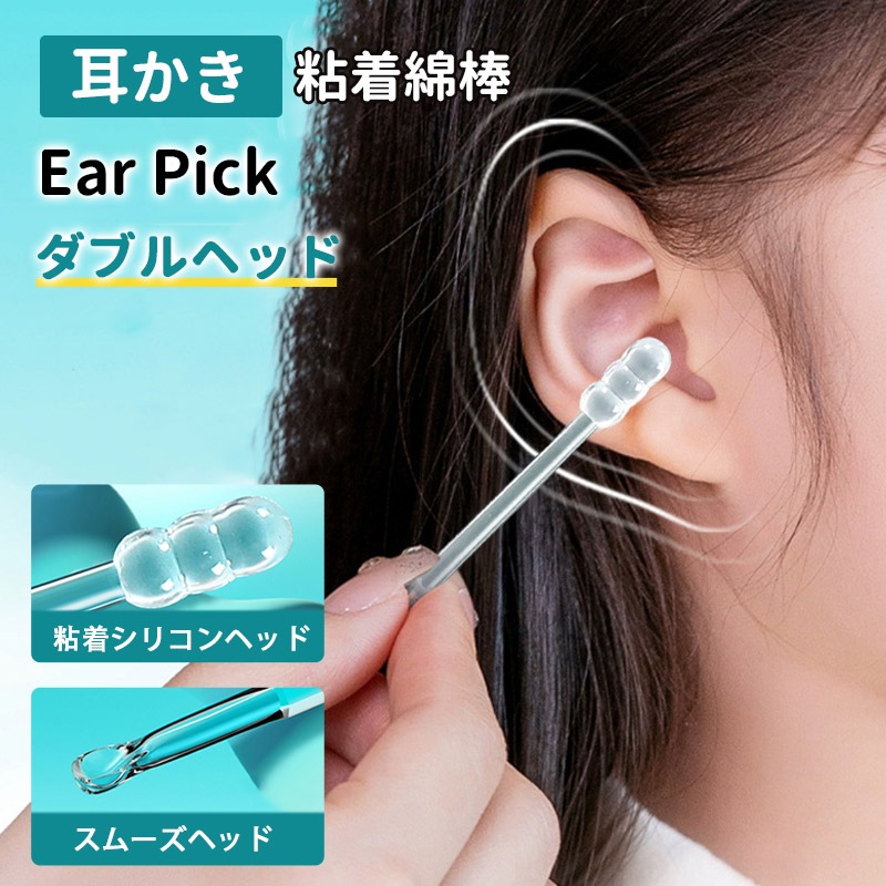 【粘着式&ダブルヘッド】耳かき 綿棒 粘着綿棒 耳掃除 耳清掃 便利グッズ みみかき めんぼう 粘着 乾性耳垢 痛みゼロ 24本入り 極細3.5mm