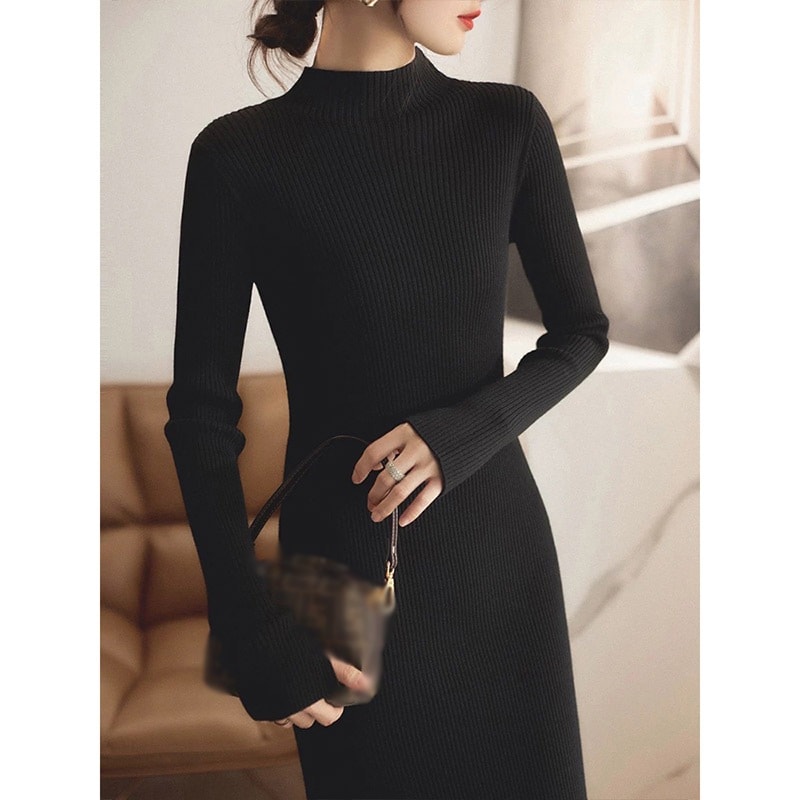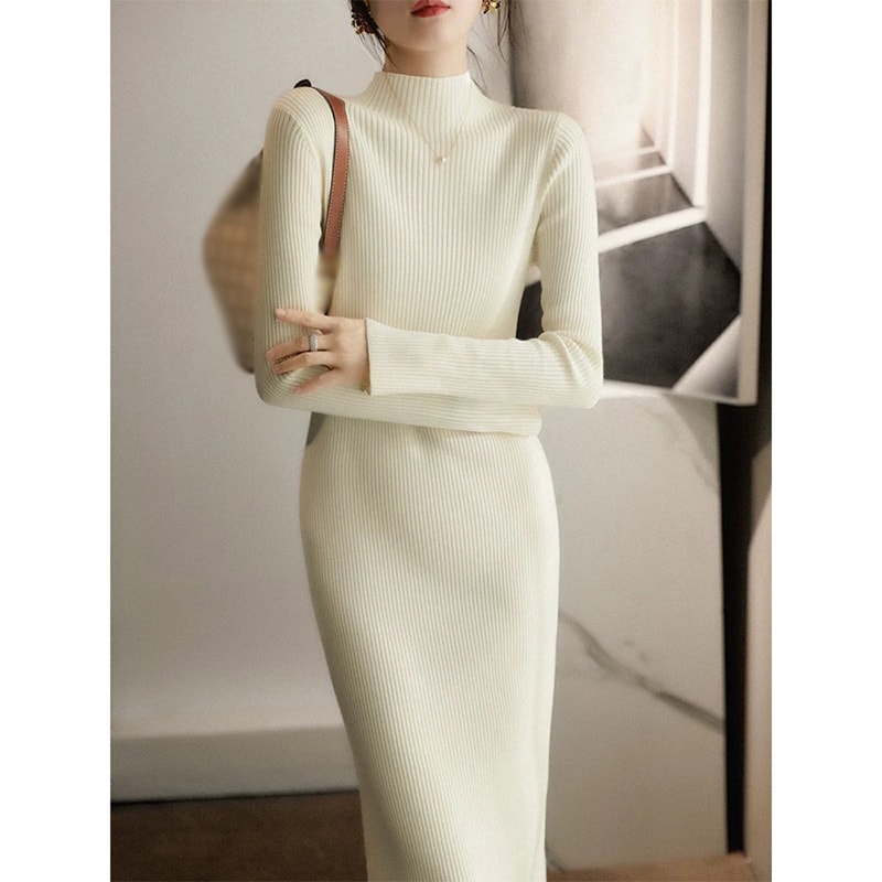 爆買 ワンピース ニットワンピース レディース 膝丈 ニット 長袖 スリット ストレッチ チュニックワンピース ニットワンピ タイト 秋冬新作 クリスマス