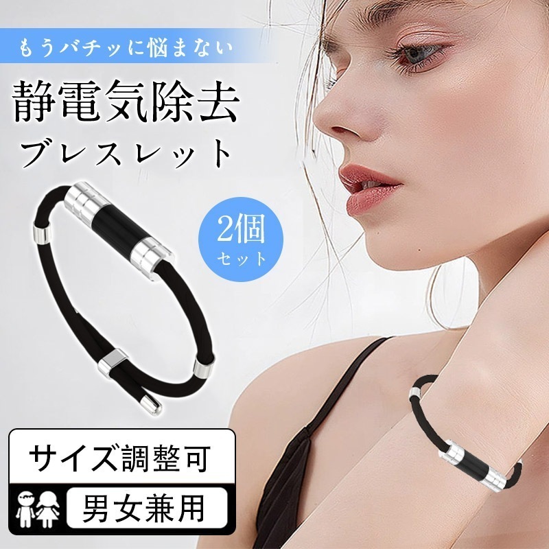爆買 静電気除去グッズ 静電気防止ブレスレット シリコン 車 ステンレス マイナスイオン 静電気除去 2個セット プレゼント カジュアル 男女兼用