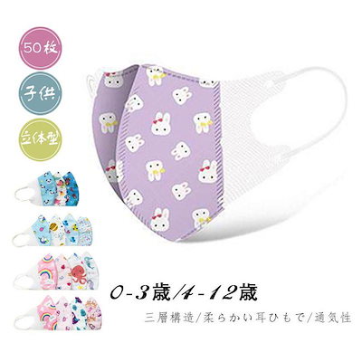 爆買 一部即日発送 幼児用マスク 使い捨て 50枚 カラーマスク ベビー 子供 立体型 4層構造 不織布 柄 飛沫防止 風邪予防 キッズ