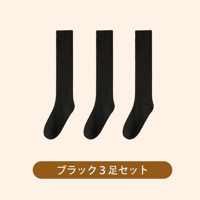 爆買 靴下 ニーハイソックス  3足入り ハイソックス 着圧 抗菌防臭 綿混 厚手 裏パイル 平編み無地オーバーニーソックス 学生 送料無料