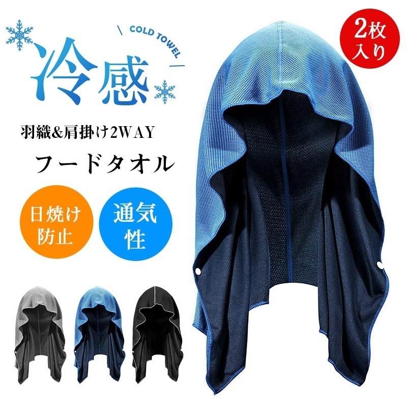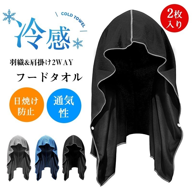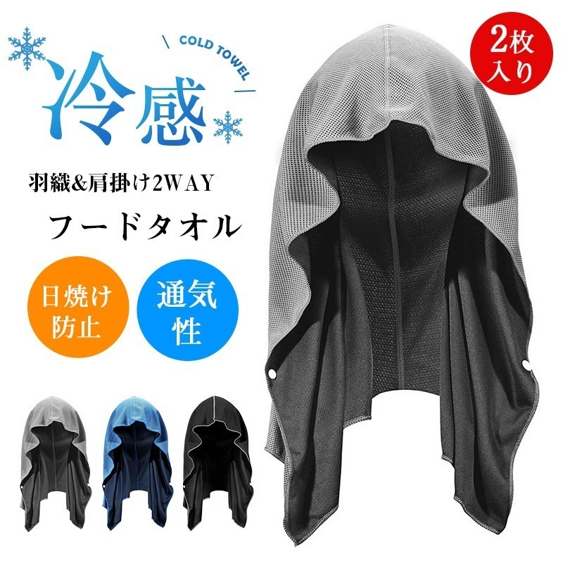 爆買 冷感フードタオル クール 冷感タオル フード 熱中症対策 ひんやりグッズ 紫外線対策 日焼け防止 フード付き 冷却 通勤 通学 アウトドア