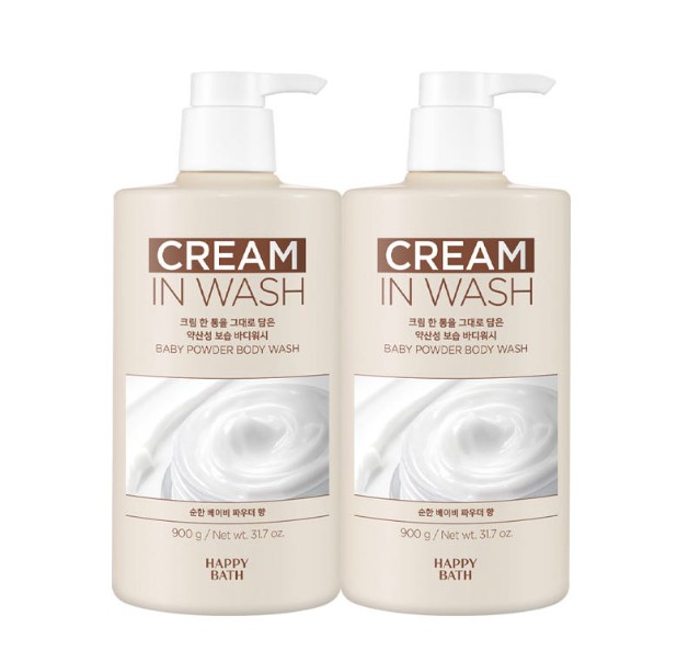 ハッピーバスクリームイン 高保湿 大容量 ボディウォッシュ ベビーパウダー 900g × 2個