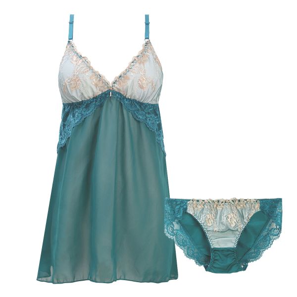 シロハトサンエイ シーサイドフラワー カップ付き スリップ&ショーツ ランジェリー ベビードール キャミ 上
