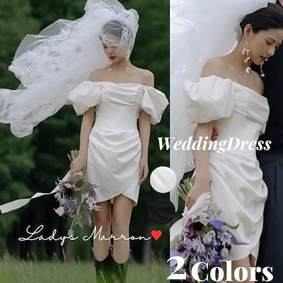 ミニウェディングドレス ウェディングドレス ミニ ミニ丈 韓国 ショート丈 ウエディングドレス 白 ミニドレス 前撮りドレス 結婚式 二次会ドレス 花嫁 白いドレス ミニスカ オフショルドレス オフシ