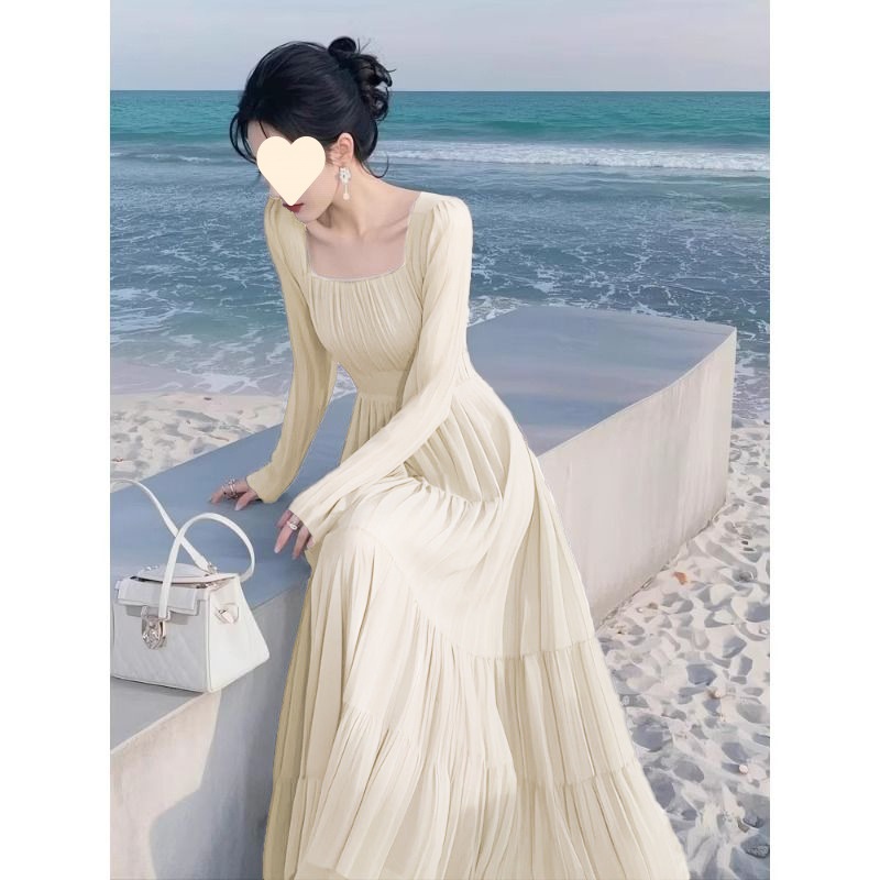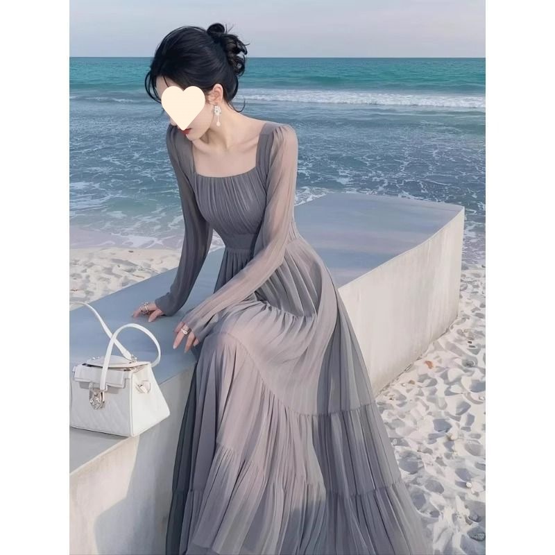 ワンピースタイプの春夏用ビーチリゾート新作韓国風フレンチテイストふんわり優しいシフォン素材