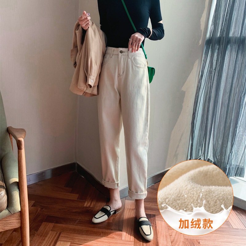 アプリコットカラーのデニムパンツフルシーズン人気のゆったりストレートシルエットダディーパンツハリウッドパンツハイウエストキャロットパンツ女性用