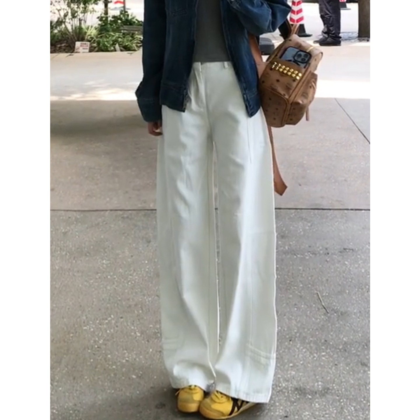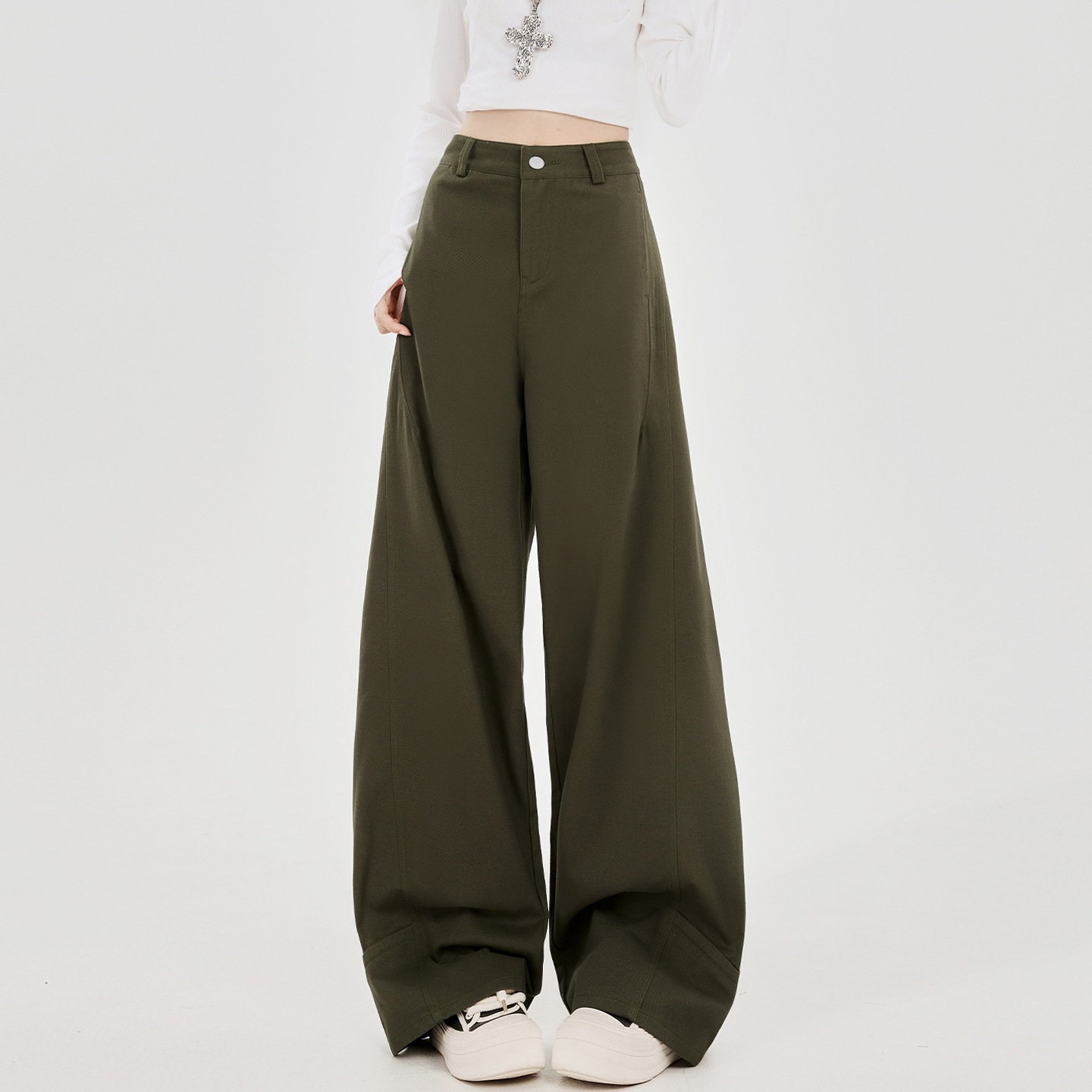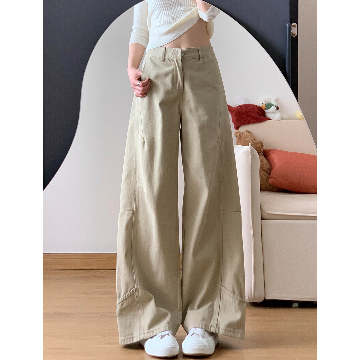 カーキ色カジュアル万能ヒップストレートデニムパンツ女性春新作デザイン性リラックス着やせしなやかドレープ太めのワイドレッグパンツ
