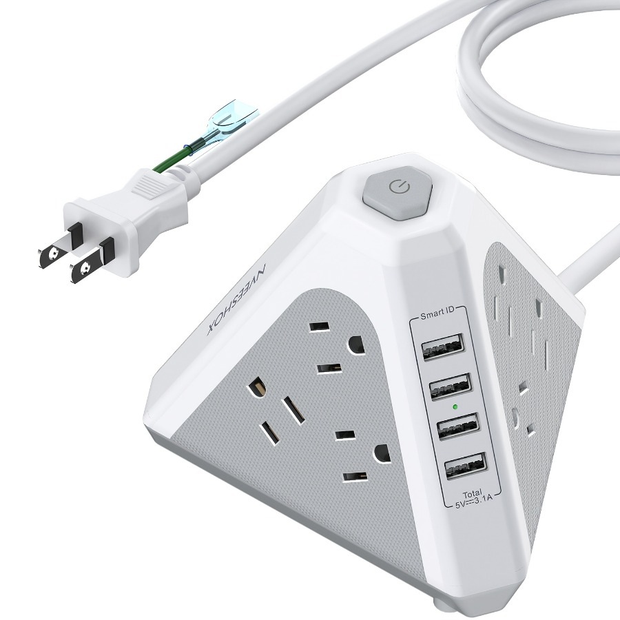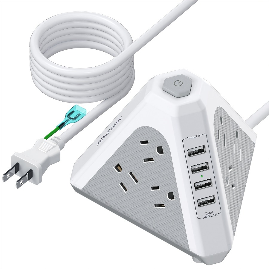 【NVEESHOX】電源タップ タワー型 延長コード付き (2M/3M)ACコンセント9個口USB-Aポート4個USBコンセント雷保護機能オクトパス配線設計コンパクトミニタイプ