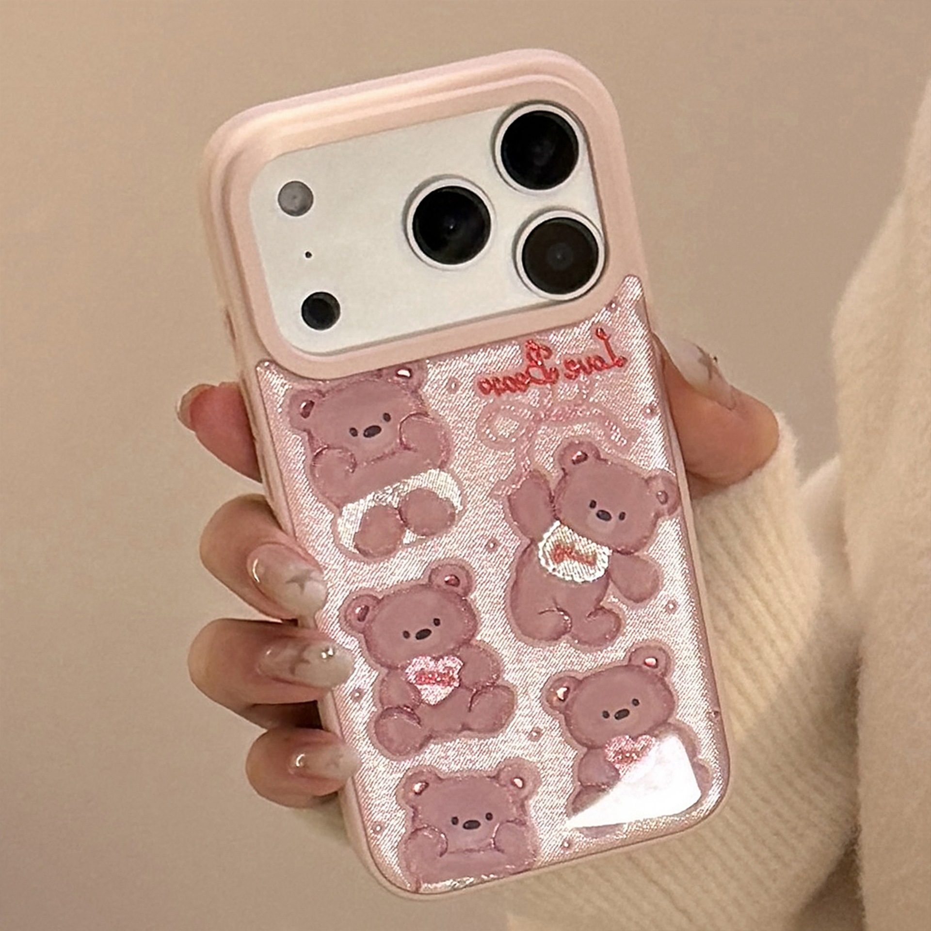 ゴールド iPhone17ProMax 対応 スマホケース 16 レジン 13 ピンクくま 15 Galaxy 対応