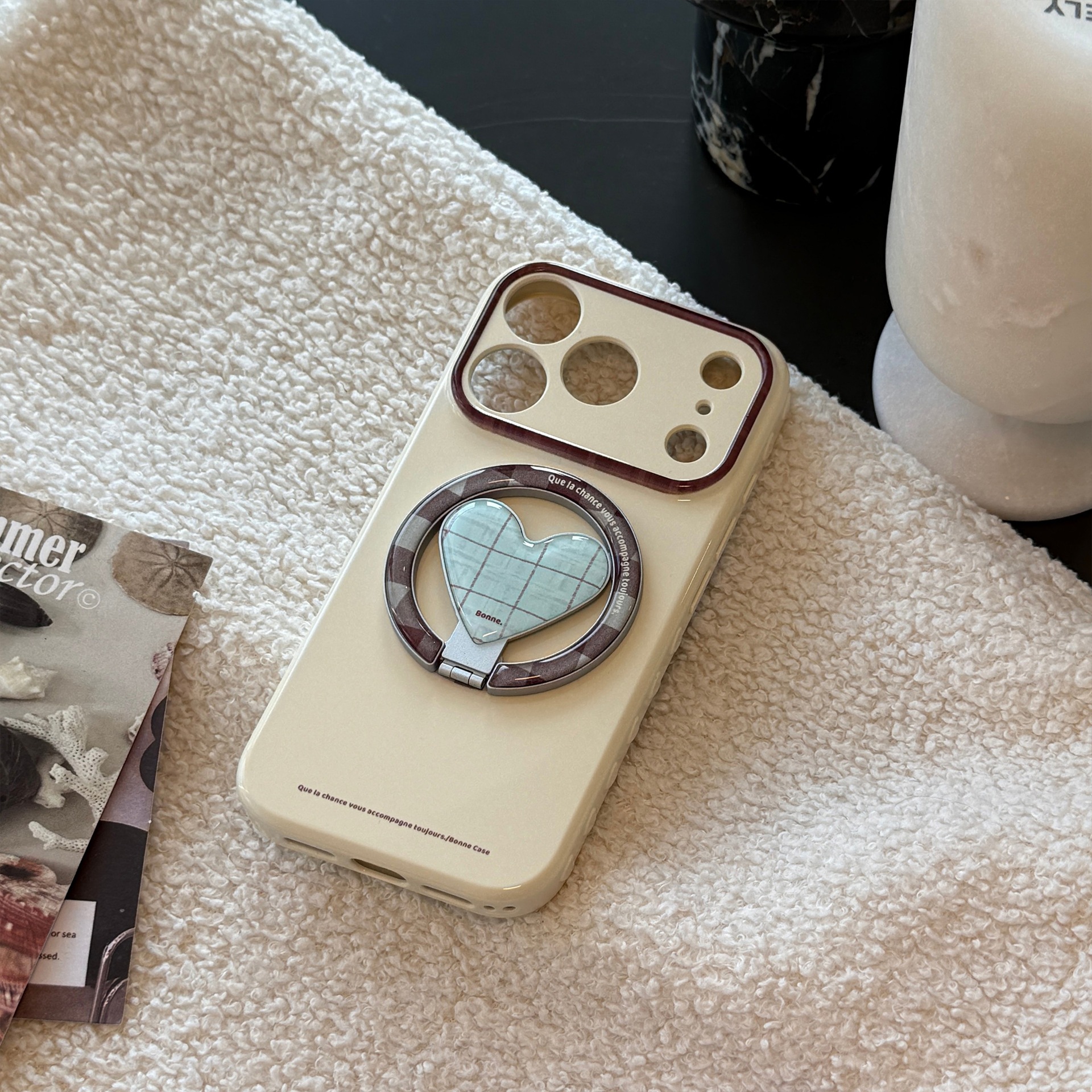 ヴィンテージカラーチェック バイカラー iPhone17ProMax/16 対応 スマホケース 落下防止 13/15 マグネットスタンド
