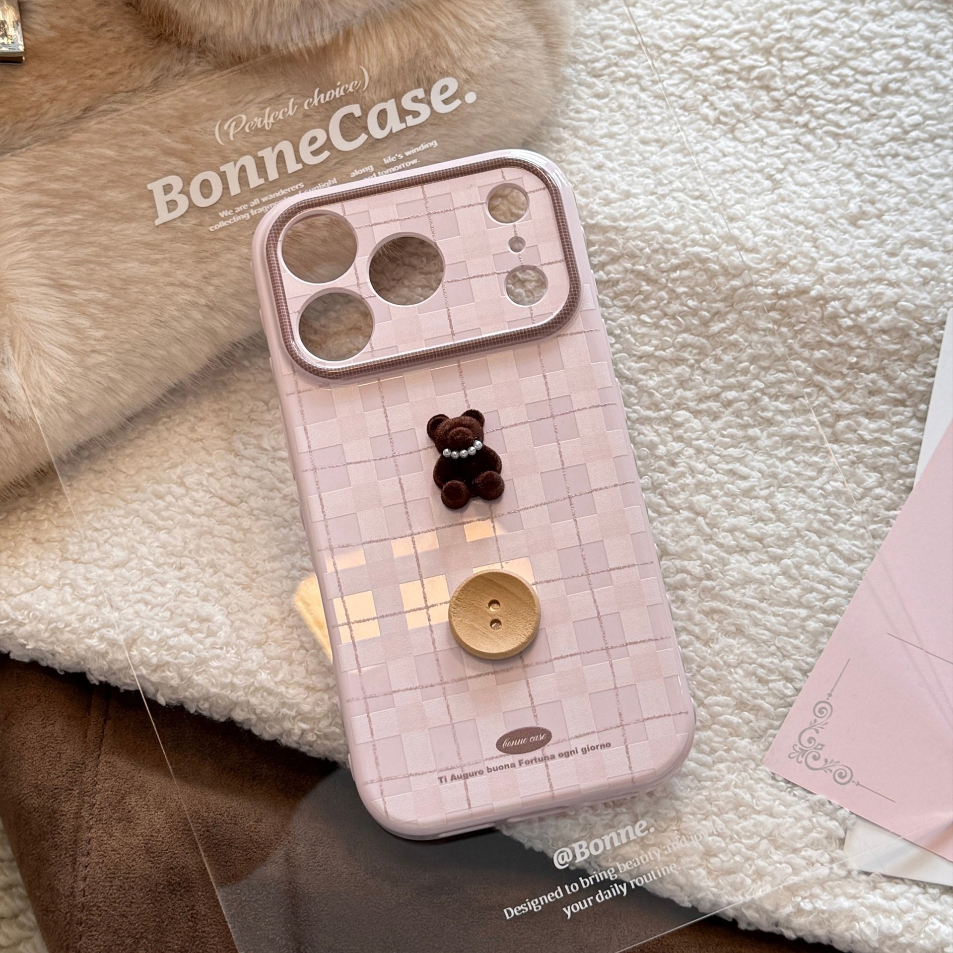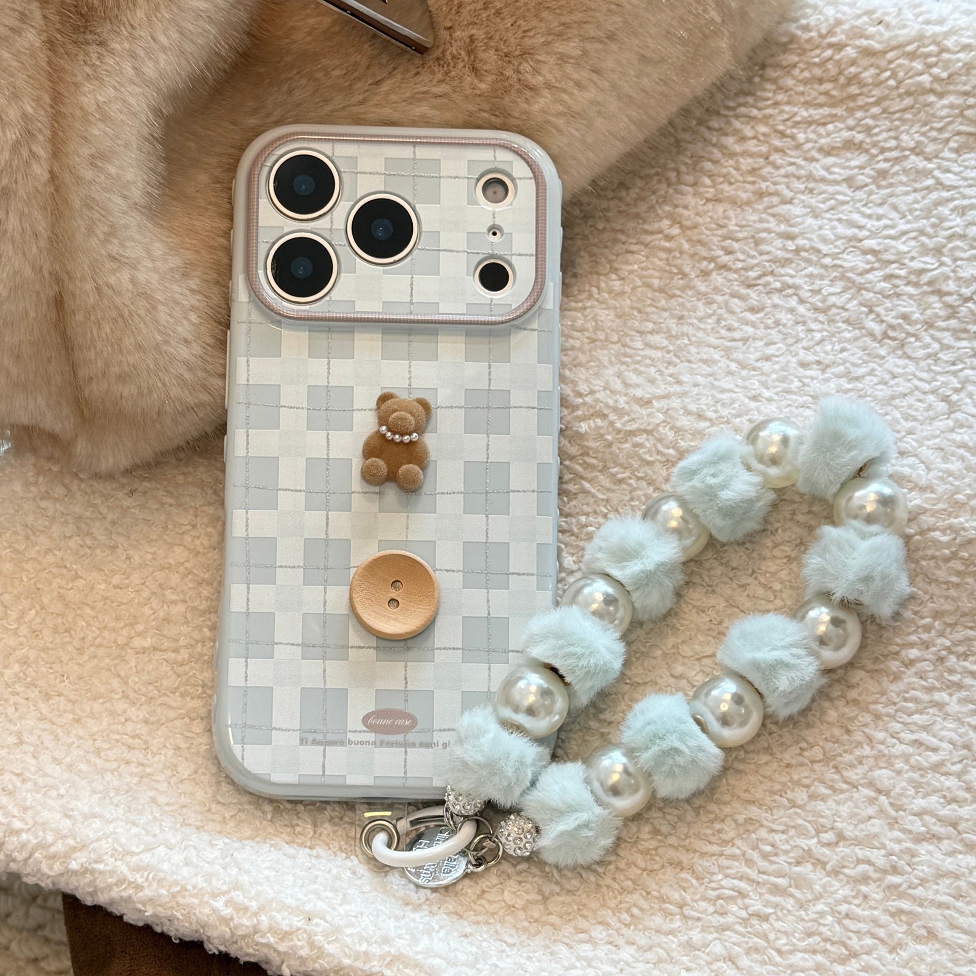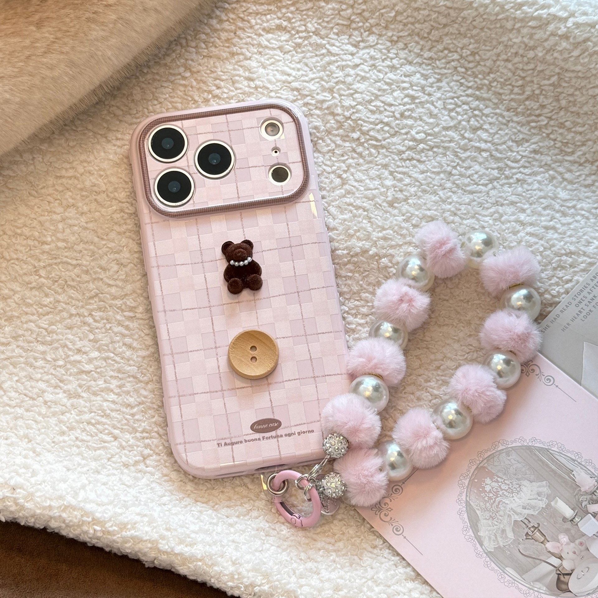 ヴィンテージキャラクターくま ブレスレット iPhone16ProMax 対応 スマホケース 17/11 立体 13 韓国風 15
