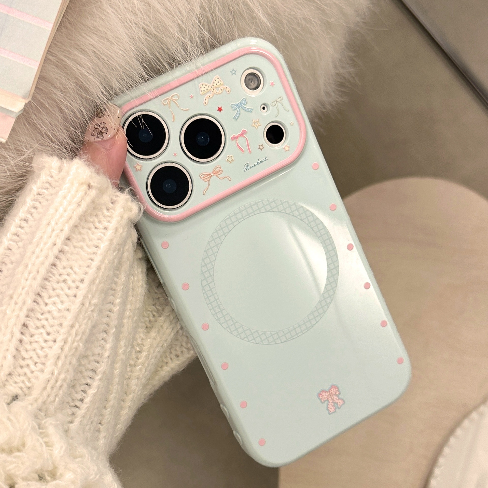 ラメ入りマグネットスタンド iPhone16Pro/17 対応 スマホケース レディース おしゃれ 13/15 リボンデザイン