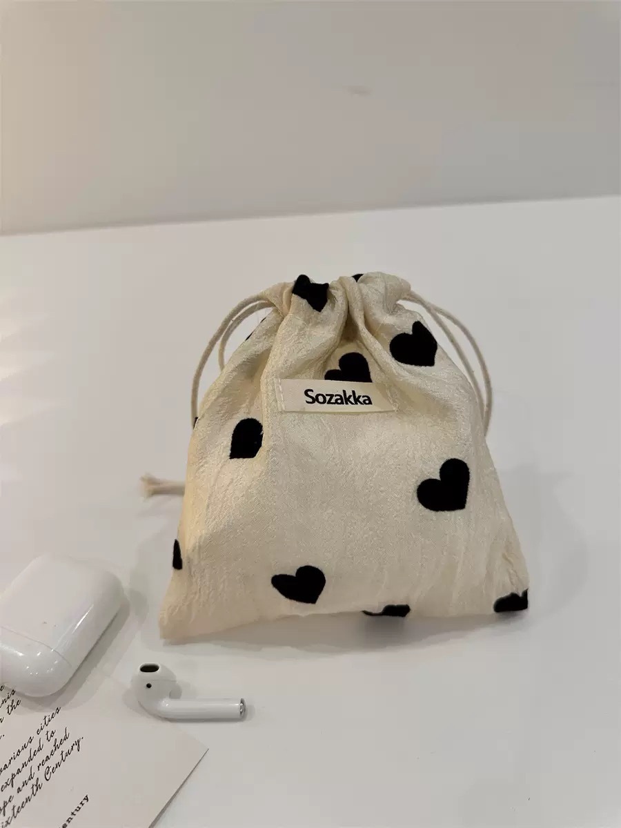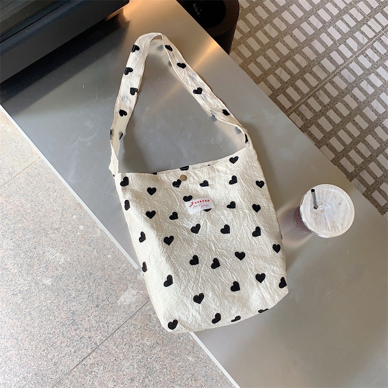 2026 年新作 シャンパン調ハート柄 キャンバス地 ショルダーバッグ 大容量 ハンドバッグ メイクポーチ 学生用脇持ちバッグ 巾着インナーポーチ