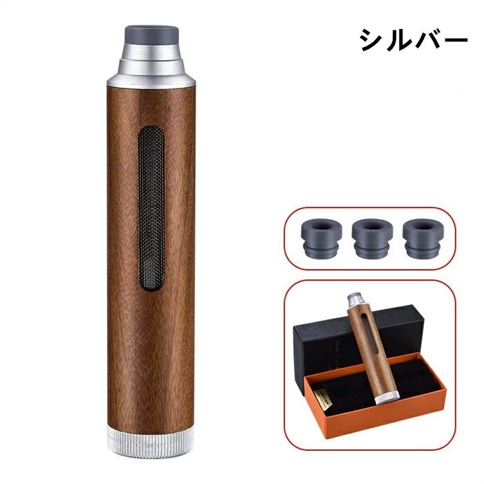 スモーク携帯灰皿 木製 軽量 一体型 灰が落ちない 灰が飛び散る防止 3つサイズのマウスピースが付き 匂いが漏れない 丸洗い可能 軽量 持ち運び アウトドア キャンプ 屋外/車内用 出かけ用