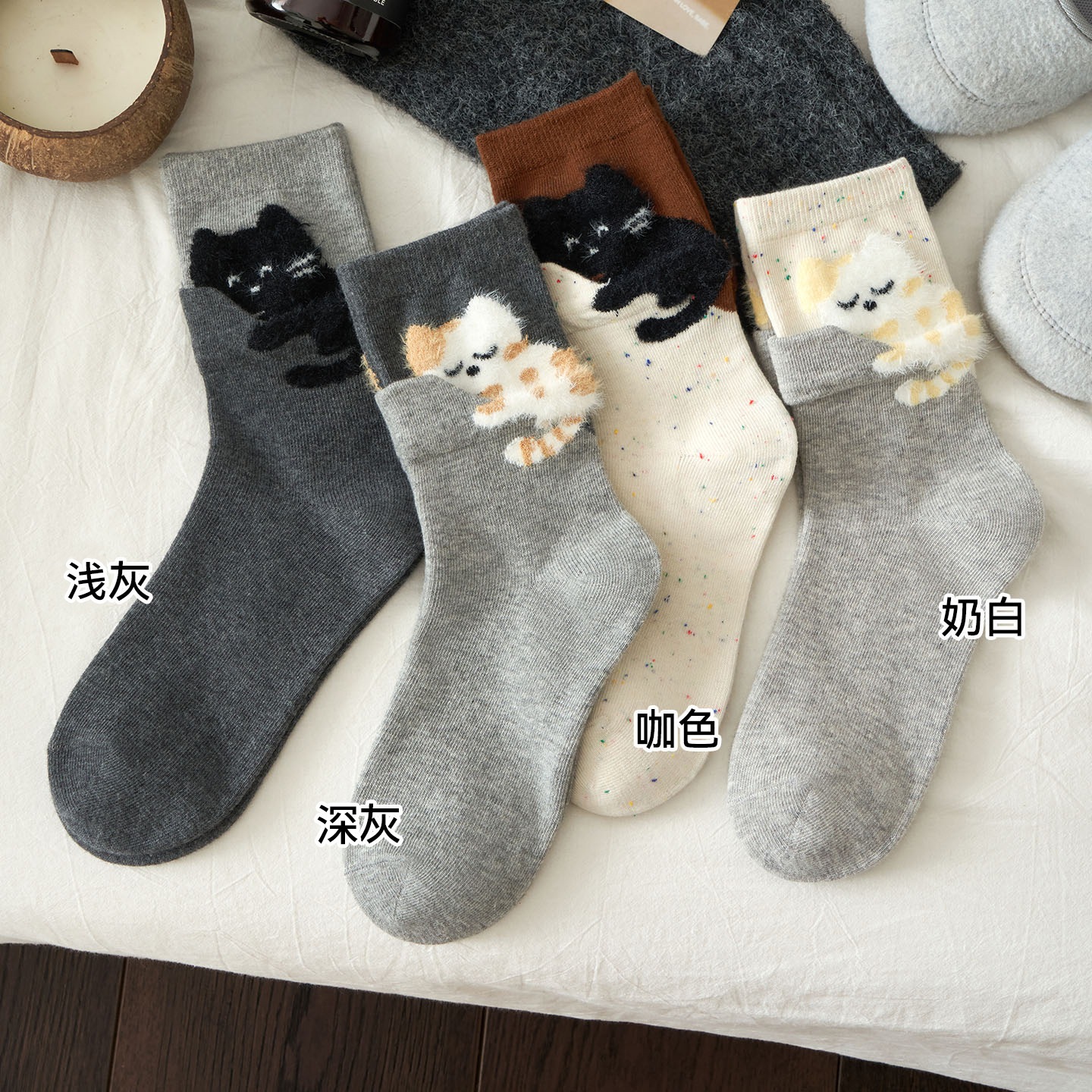 可愛い ネコ ミドルソックス レディース カートゥーン 植绒 2025 たどたどしい ロング 綿 ソックス