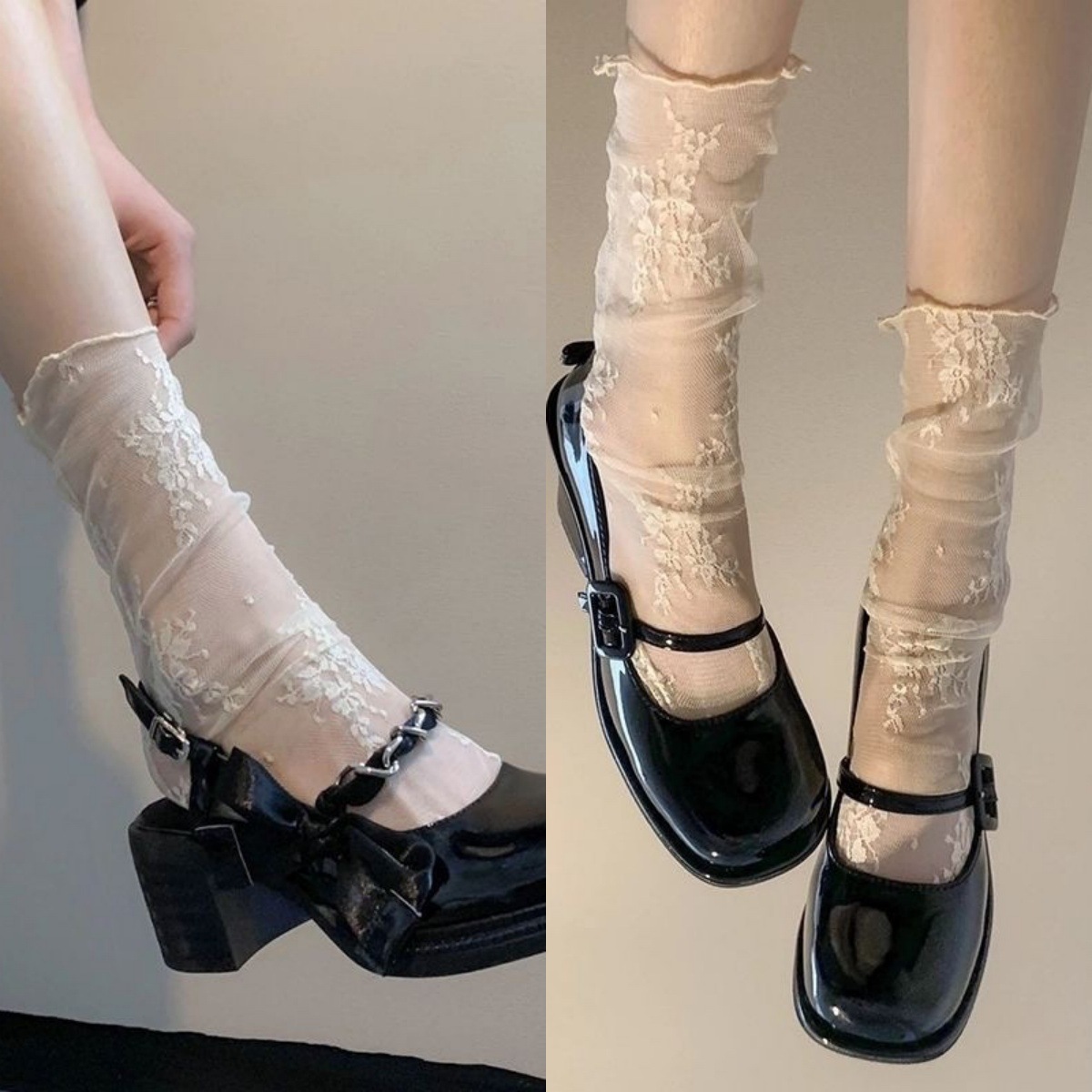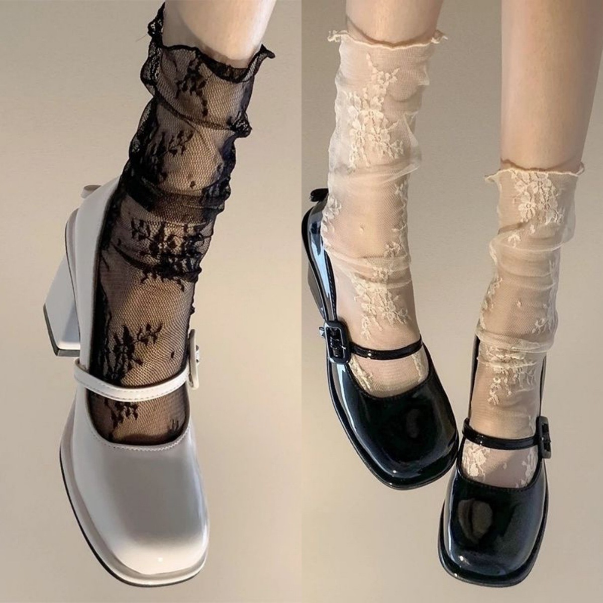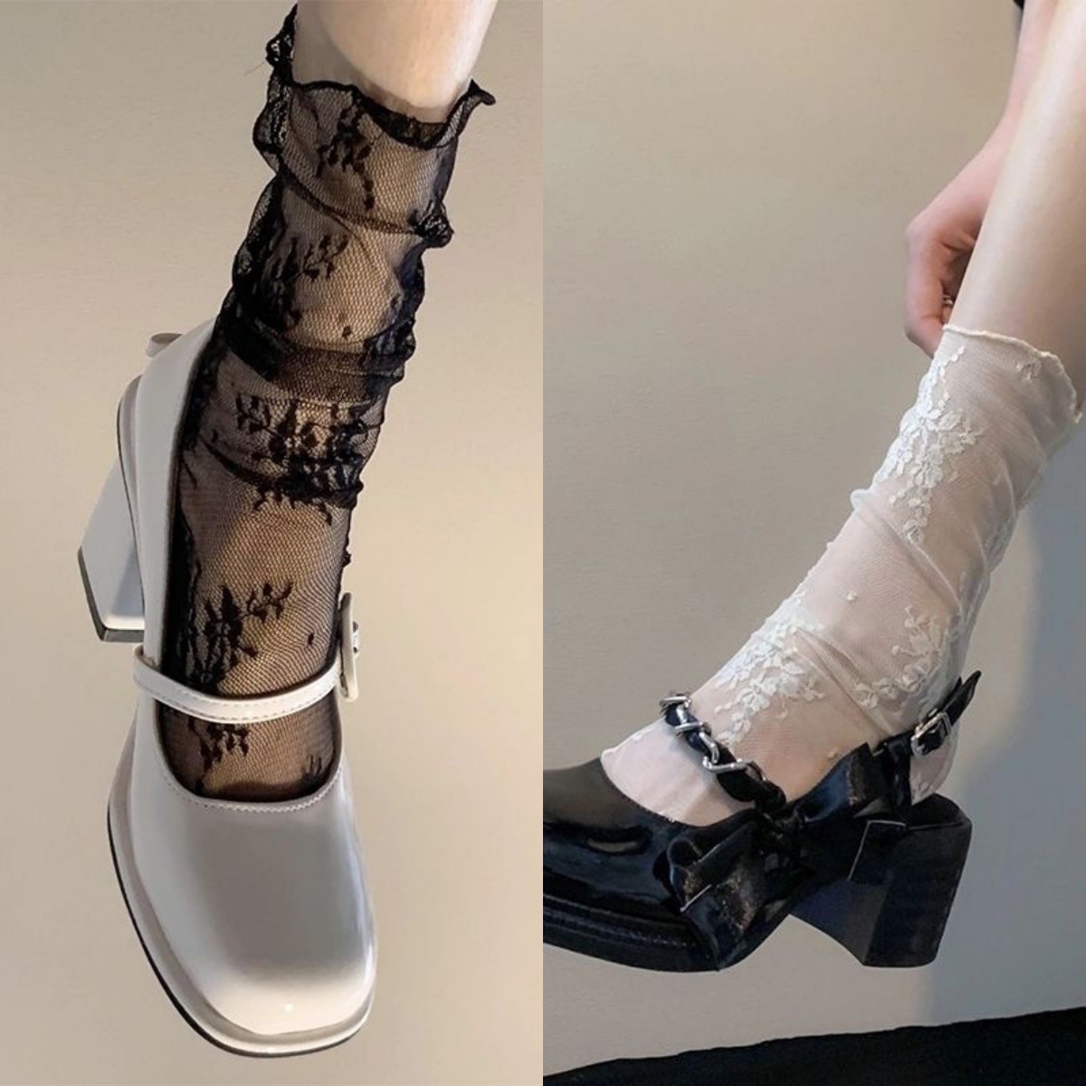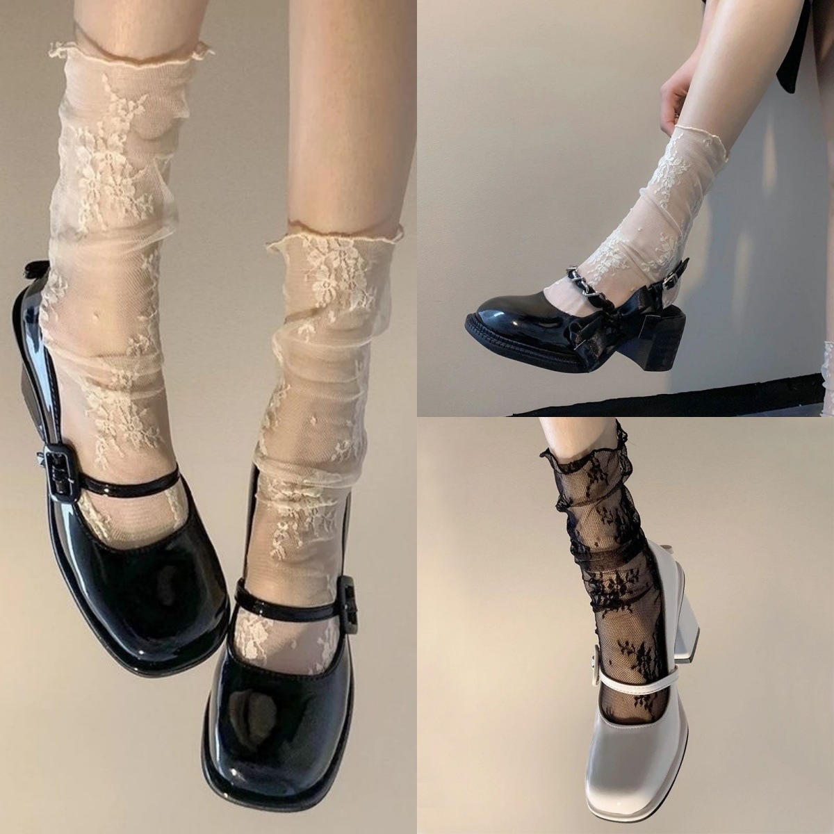 レース ソックス レディース 網紗 超薄 SNS映え 白黒 ショート ミドル ロング ふくらはぎ たどたどしい ガラス