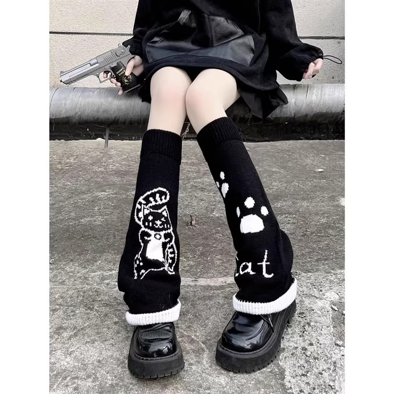 花奈 猫 可愛い ネコ 脚カバー ソックスカバー ミドル ふくらはぎ ソックス ニット ロリータ ロング たどたどしい ソックス
